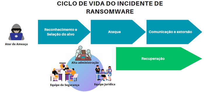 - O ciclo de vida de um incidente de ransomware e os atores envolvidos nas fases do incidente;