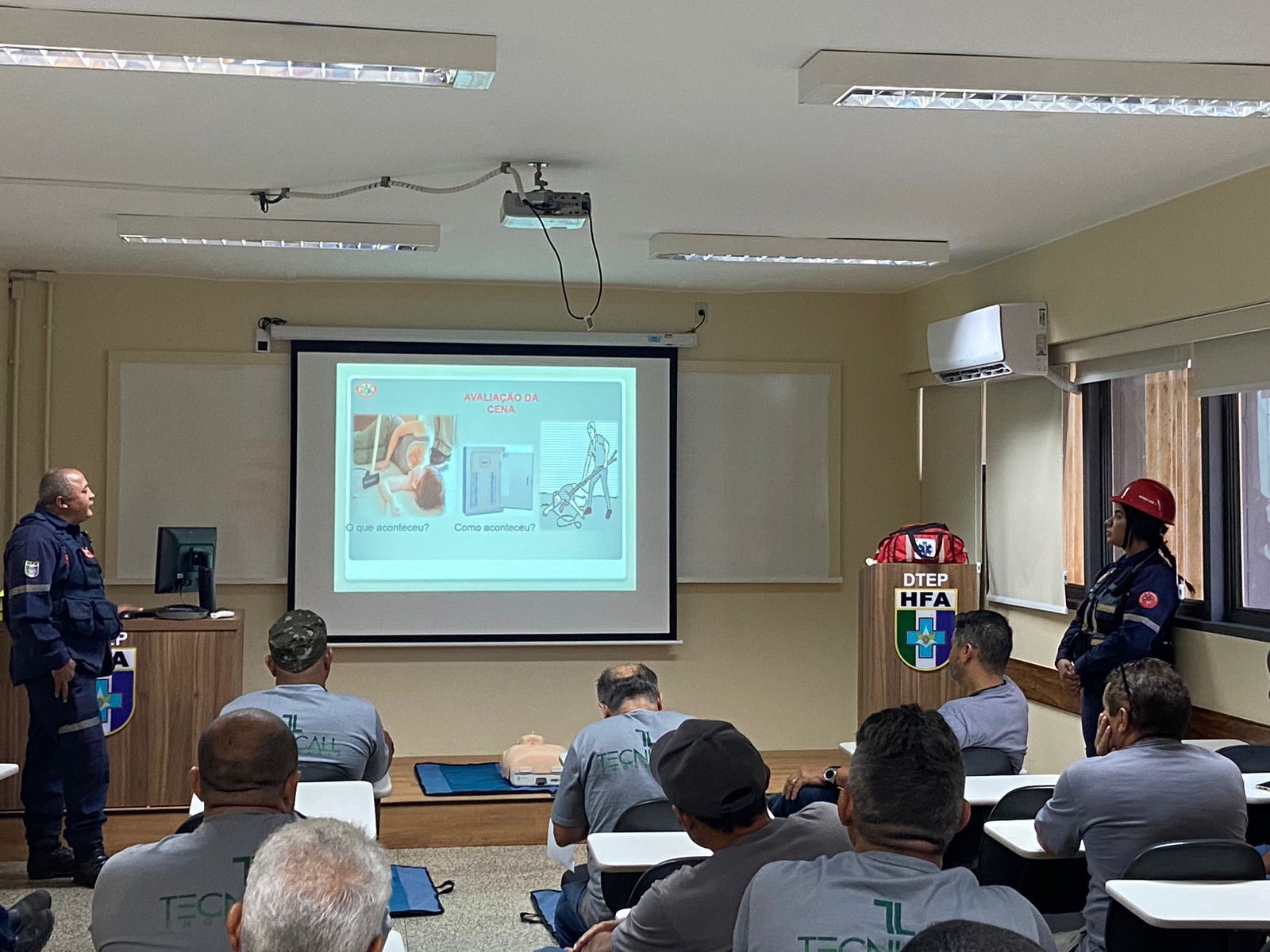 “Expressamos nossa satisfação e reconhecimento pelos conhecimentos compartilhados com nossa equipe e ressaltando a qualidade didática da instrução dividida em duas etapas. A primeira, realizada em sala de aula, visou a instrução de primeiros socorros com técnicas simples que poderão ser úteis no trabalho e na vida de nossos colaboradores. A segunda, em ambiente externo, ensinou de forma prática sobre tipologias e manejo de equipamento de extinção de fogo.”