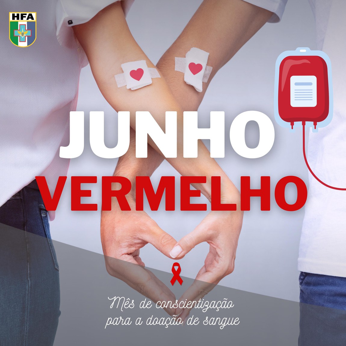 O mês de junho é marcado com a cor vermelha, simbolizando a campanha de conscientização e incentivo à doação de sangue. Ainda em junho, no dia 14, é comemorado o Dia Mundial do Doador de Sangue, que visa conscientizar e incentivar a população sobre a importância de ser um doador. A doação de sangue é de extrema importância, pois essa solidariedade é o recurso capaz de salvar vidas, de forma simples e rápida. Fonte: OMS - Organização Mundial da Saúde FAÇA PARTE DESTA CAMPANHA! SEJA VOCÊ, TAMBÉM, UM DOADOR DE SANGUE! HFA: UNINDO FORÇAS PELA SAÚDE! |