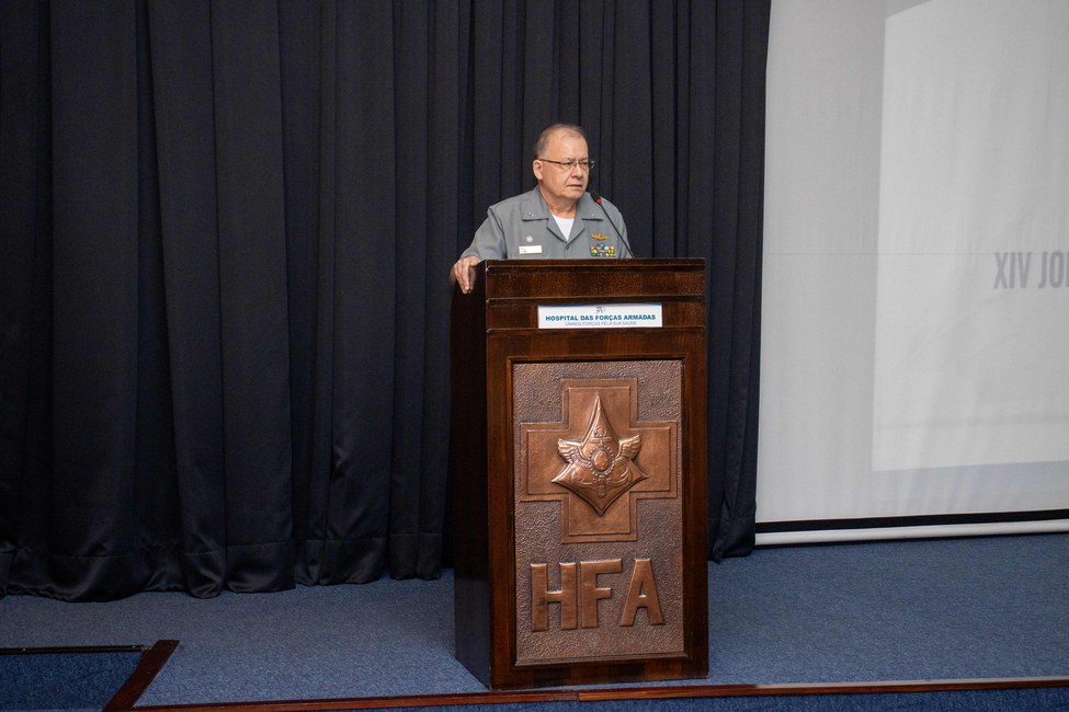 O Diretor Técnico de Saúde do HFA, Contra-Almirante VICENTE GARCIA RAMOS, acompanhado da Diretora Técnica de Ensino e Pesquisa, Brigadeiro ANA PAOLABRASIL MEDEIROS, realizou a abertura da cerimônia.