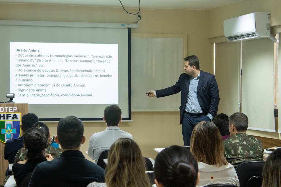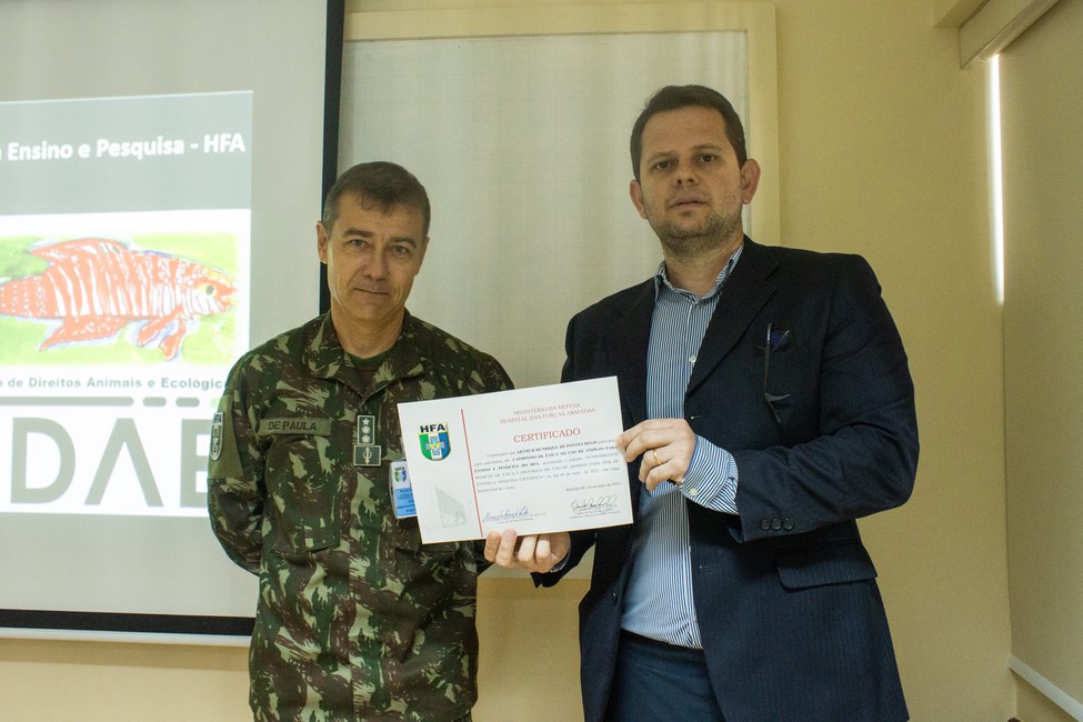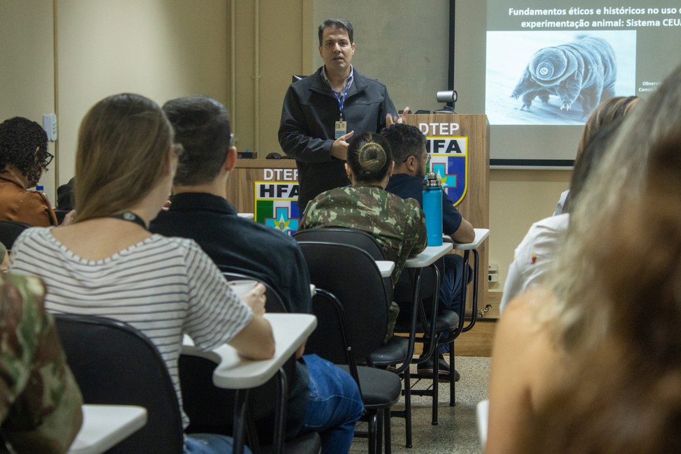 O evento foi realizado no auditório da Direção Técnica de Ensino e Pesquisa do HFA (DTEP) e coordenado pelo Tenente Coronel Veterinário ALEXANDRE CIRNE DE PAULA, Chefe da Divisão de Pesquisa, juntamente com a comissão organizadora, integrada pelo o Capitão Veterinário RENATO LEMOS, Coordenador da CEUA, a 1º Ten KELLIANE ALMEIDA DE MEDEIROS, Vice Coordenadora da CEUA, e demais membros.