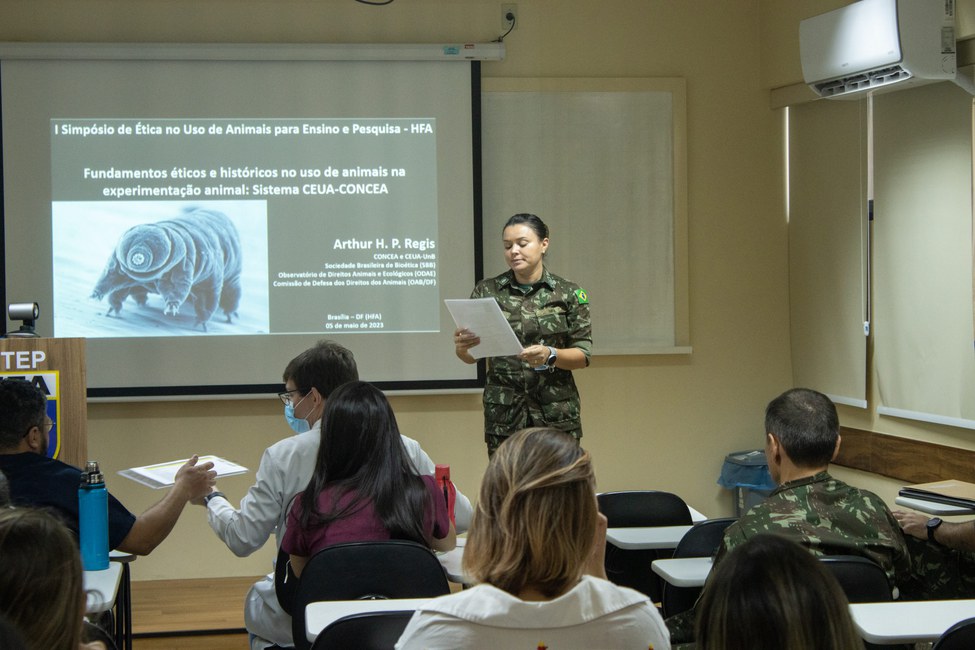 Brasília-DF, 15/05/2023 – O Hospital das Forças Armadas (HFA) realizou, no dia 05 de maio (sexta-feira), o “ I Simpósio de Ética no Uso de Animais para Ensino e Pesquisa do HFA”, com o objetivo de atualizar e capacitar o colegiado da Comissão de Ética no Uso de Animais do Hospital das Forças Armadas (CEUA) e pesquisadores que utilizam animais para ensino e pesquisa no Laboratório de Cirurgia Experimental (Lace/DTEP), em assuntos relevantes à ética na utilização de animais e métodos alternativos.