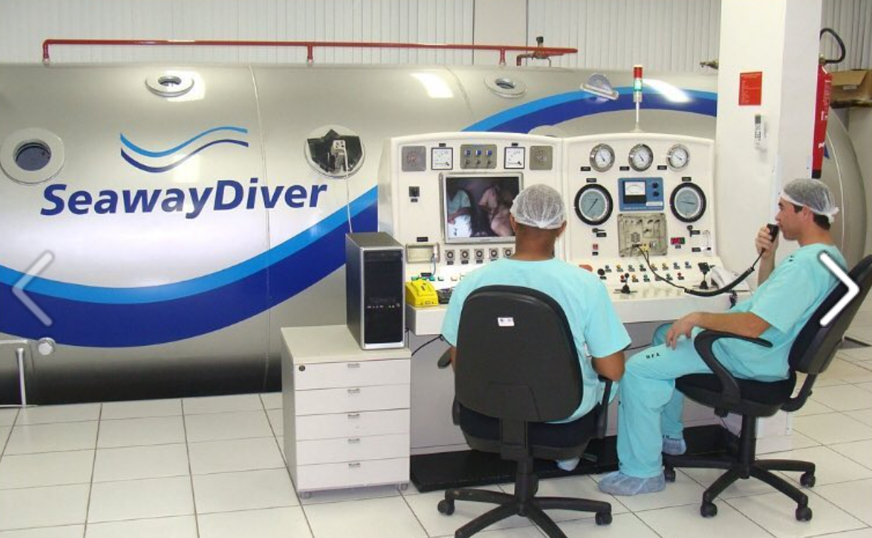 - Sessões de Oxigenoterapia Hiperbárica em câmara Multiplace e Monoplace. Oxigenioterapia a 100% sob pressão em doenças descompressivas, intoxicação gasosa e coadjuvante no tratamento de feridas e ou no pré/trans/pós cirúrgico.