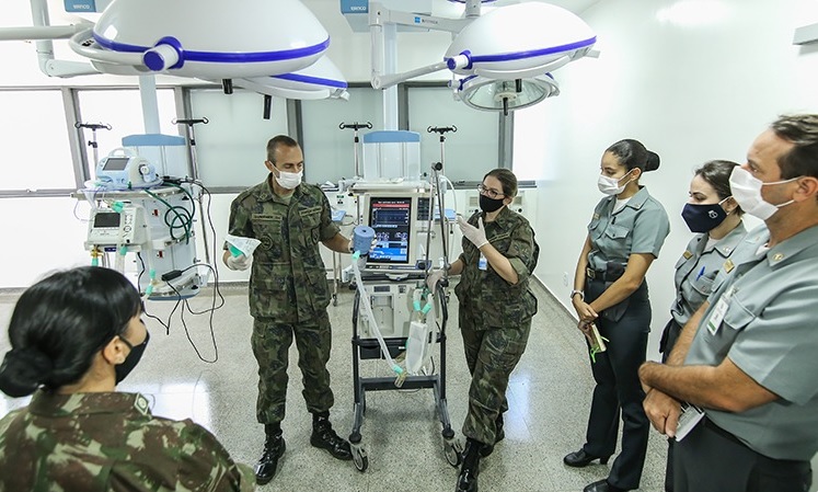 Brasília (DF), 05/05/2020 - Capacitação específica no combate ao coronavírus é indispensável para os profissionais de saúde que atendem pacientes acometidos pela Covid-19. Nesta terça-feira (05), unidades de saúde das Forças Armadas deram início a treinamento voltado para emergências clínicas e cuidados intensivos para médicos, enfermeiros, fisioterapeutas e técnicos de enfermagem.