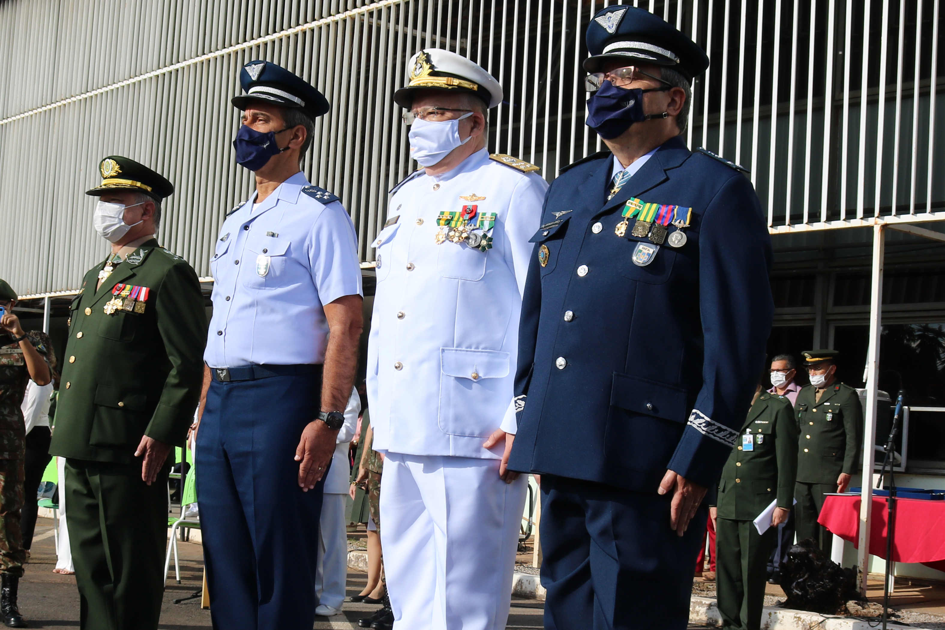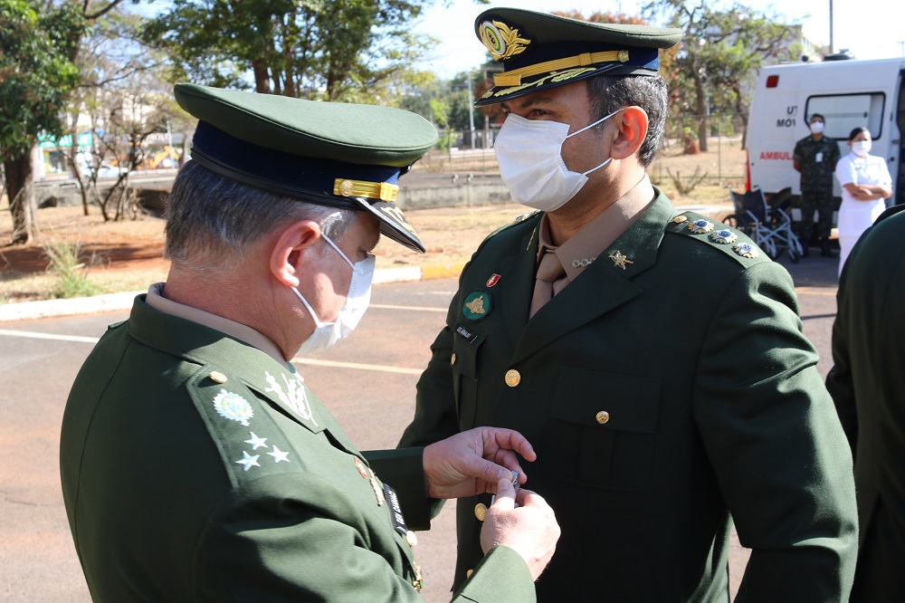 Brasília (DF), 02/09/2021 – Em uma manhã ensolarada, de vento ameno e aura de gratidão, foi realizada nesta quinta-feira (2), no Hospital das Forças Armadas, a Cerimônia de Entrega de Medalhas para Oficiais e Praças; Promoção de Oficiais do Exército; prestação do Compromisso de Oficiais promovidos ao Primeiro Posto do Exército e da Força Aérea Brasileira; e homenagem a Servidora Civil Maria Cândida, em fase de aposentadoria, após mais de 49 anos de serviço no Hospital. O evento contou com a presença do Tenente-Brigadeiro Carlos Augusto Amaral Oliveira, Ministro do Superior Tribunal Militar; do Comandante Logístico, General Ricardo Rodrigues Canhaci; do Diretor-Técnico de Saúde, Brigadeiro Médico Geraldo José Rodrigues; e do Diretor-Técnico de Ensino e Pesquisa do HFA, Almirante Vicente Garcia Ramos.