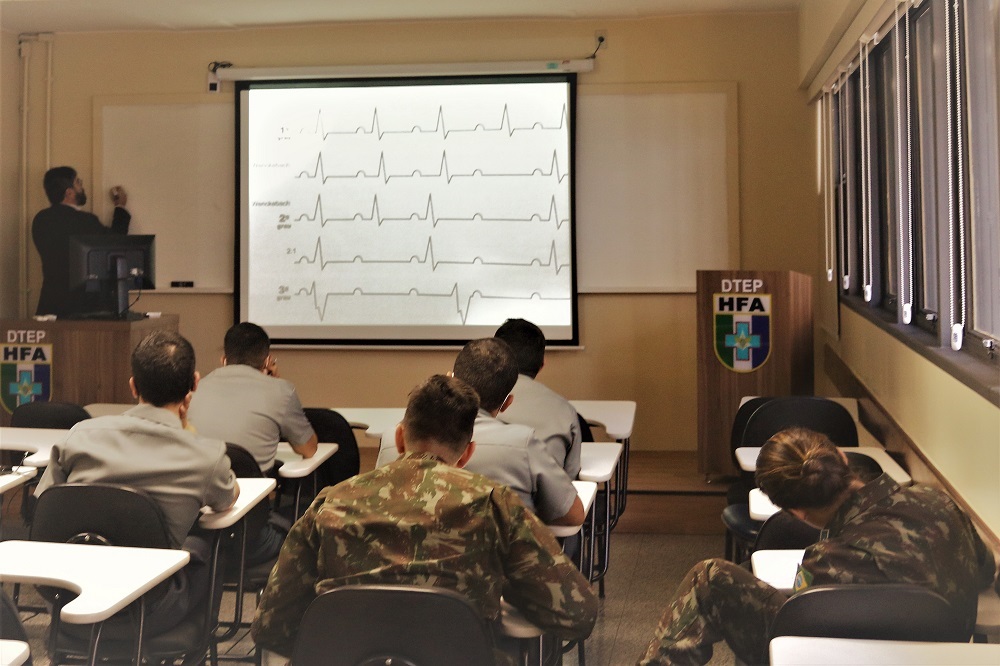 O Curso será divido em quatro módulos e visa capacitar, em especial, as equipes médicas que concorrem ao serviço de pronto atendimento nos Hospitais Militares de Brasília/DF, sobretudo, médicos integrantes do HFA e das Organizações Militares localizadas na Guarnição de Brasília. O título do Módulo 1, foi Cardiovascular, cuja as aulas trataram sobre Avaliação Inicial ao Paciente Grave, Taquicardia e bradicardia, Síndrome Coronariana Aguda e Acidente Vascular Cerebral.