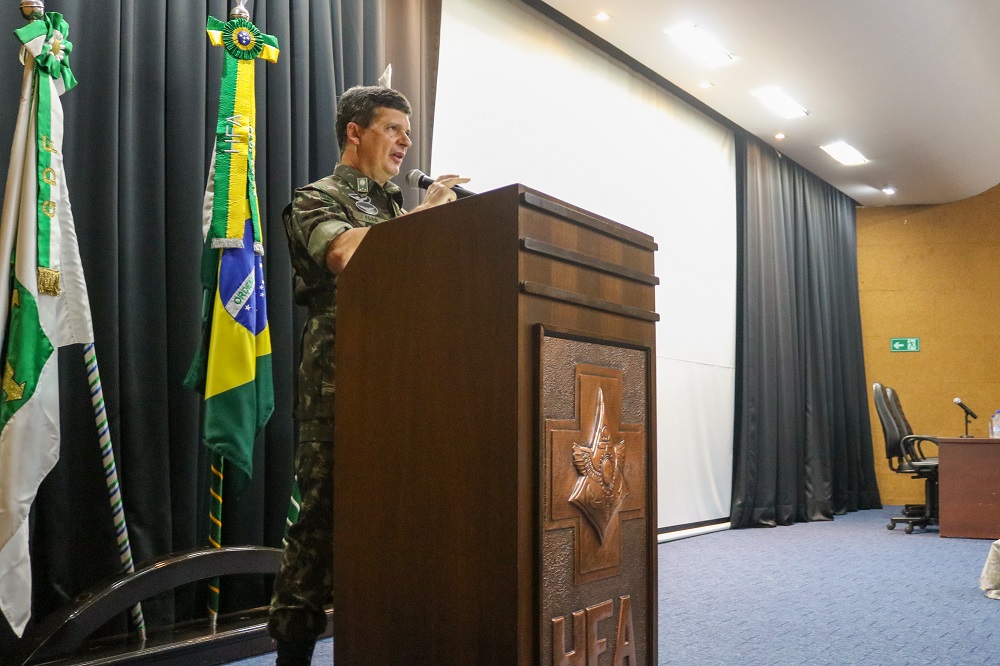 O Gen Fossi, em suas palavras, fez um breve histórico sobre o emprego do Serviço de Saúde e sua importância em conflitos armados, sobretudo na Segunda Guerra Mundial. “A situação de Guerra, para todos que são de saúde é real! Vimos nos últimos dois anos, o combate à pandemia, se dedicaram para fazer o trabalho, arriscando até a própria vida para salvar outras vidas”. Ressaltou o General em referência aos profissionais de saúde e em especial aos do serviço de Enfermagem. Por fim o General parabenizou todos os profissionais de enfermagem, pela sua data, comemorada no dia 12 de maio e destacou: “Em um pouco mais de um mês à frente do Hospital eu posso ver o trabalho relevante que vocês realizam. Vocês são a força motriz do Hospital!” Finalizou.