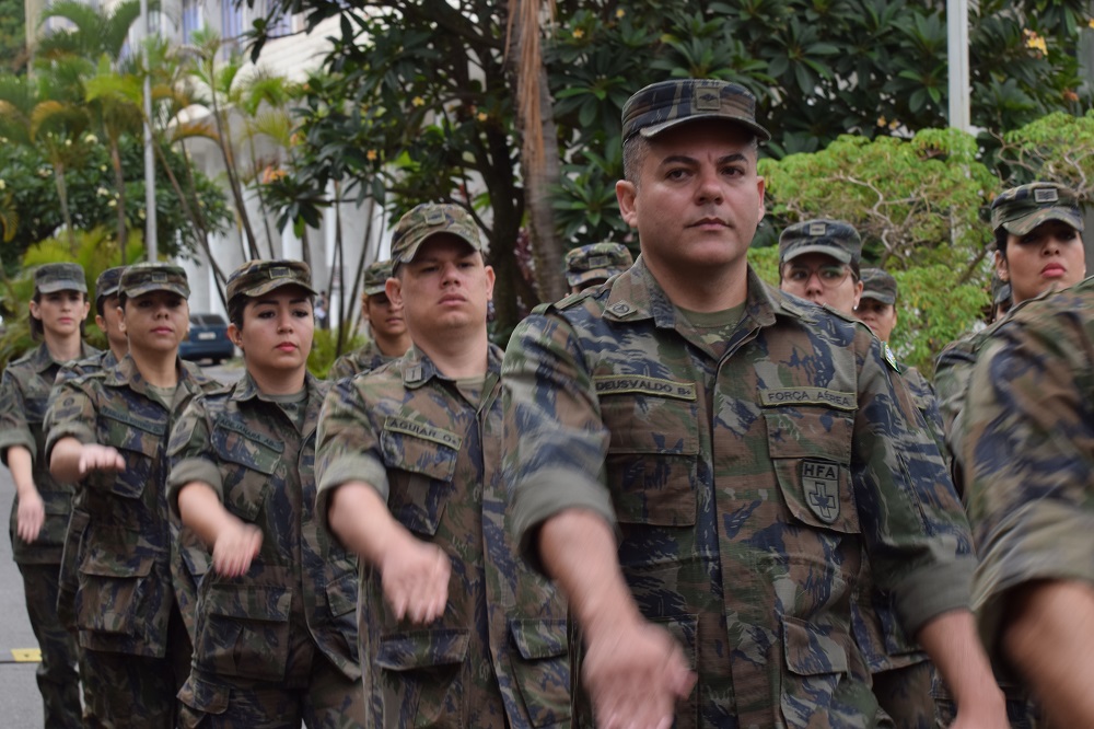 Encerrando a solenidade a tropa do HFA, composta por militares das três forças desfilaram em continência ao Comandante Logístico ao som da Banda do Batalhão da Guarda Presidencial.