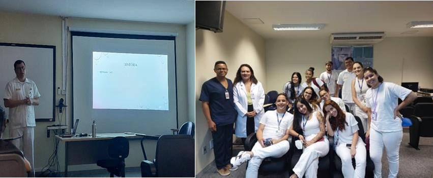 O Capitão de Corveta Médico, Leonardo Mendes Pinto, Coordenador do NQSP/HFA apresentou palestra aos estagiários de fisioterapia da Universidade Católica sobre prevenção de Lesão por Pressão, no auditório Carlos Chagas.