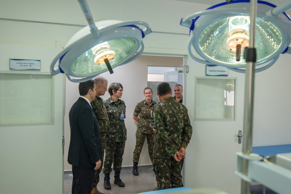 Ao final da reunião o General VIANA FILHO acompanhou o General FURLAN em uma breve visita por algumas instalações do HFA, dentre elas, a Divisão Técnica de Ensino e Pesquisa (DTEP), onde foi recepcionado pelo Capitão de Mar e Guerra, OSVALDO PEÇANHA CANINAS, Subdiretor Técnico de Ensino e Pesquisa, o Centro de Simulação Realística e os laboratórios de pesquisa que ficam localizados no local, foram observados também o Serviço de Medicina Hiperbárica e o Centro Cirúrgico.