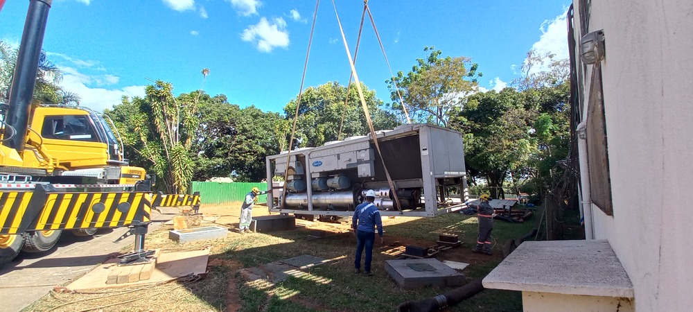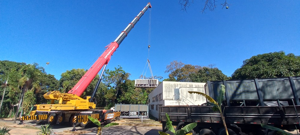 Para a manobra, foi utilizado um guindaste com capacidade de 20 toneladas, e foi preciso erguer as máquinas a uma altura superior a 5 metros. Além disso, o guindaste realizou a desmobilização de três Chillers que estavam instalados na CAG e em operação até então, e que pertencem ao ICT-DF. Estes equipamentos poderão ser usados no caso de emergências como back-up.