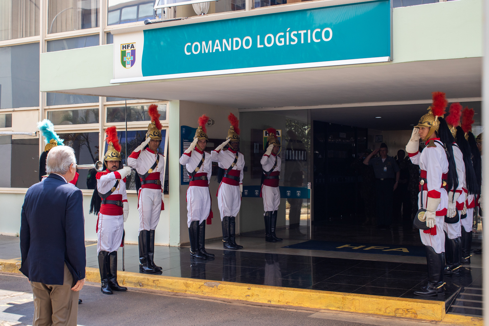 Por ocasião da chegada da Comitiva, integrantes do 1º Regimento de Cavalaria de Guardas, “Dragões da Independência” compuseram a Ala da Guarda de Honra para o cerimonial militar. Durante a reunião, o Comandante Logístico apresentou a estrutura organizacional do Hospital, as ações e projetos desenvolvidos no presente ano e as metas e objetivos de médio e longo prazo, tudo com foco para atender os usuários com excelência e humanização, valores intrínsecos no cotidiano do HFA.