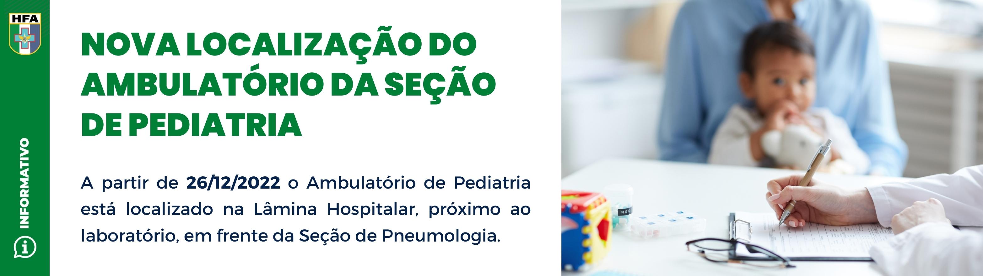 - O Ambulatório de Pediatria está localizado na Lâmina Hospitalar, próximo ao laboratório, em frente da Seção de Pneumologia.