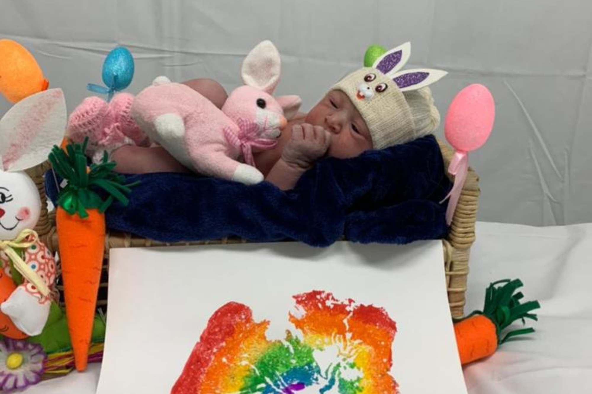 No início, eu pintava o cartão-padrão do HUB com canetinha; ao longo do tempo, essa personalização foi evoluindo e aí veio a ideia de fazer os meses temáticos também. Junto à essa ideia, comecei a realizar fotos dos bebês em diferentes cenários, tentando aproximar ao máximo a um ensaio fotográfico. Além disso, também tem os carimbos dos “pezinhos” em uma moldura de cartolina ou nos braços dos pais. Hoje, os cartões de identificação são confeccionados por mim por meio da tecnologia e, também, manualmente. Tudo isso com a devida autorização do responsável e da minha chefia.