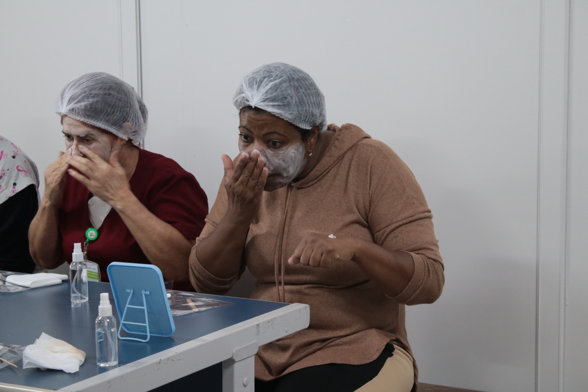 Edi Marcelina durante a sessão de skincare oferecida na IX Semana de Enfermagem