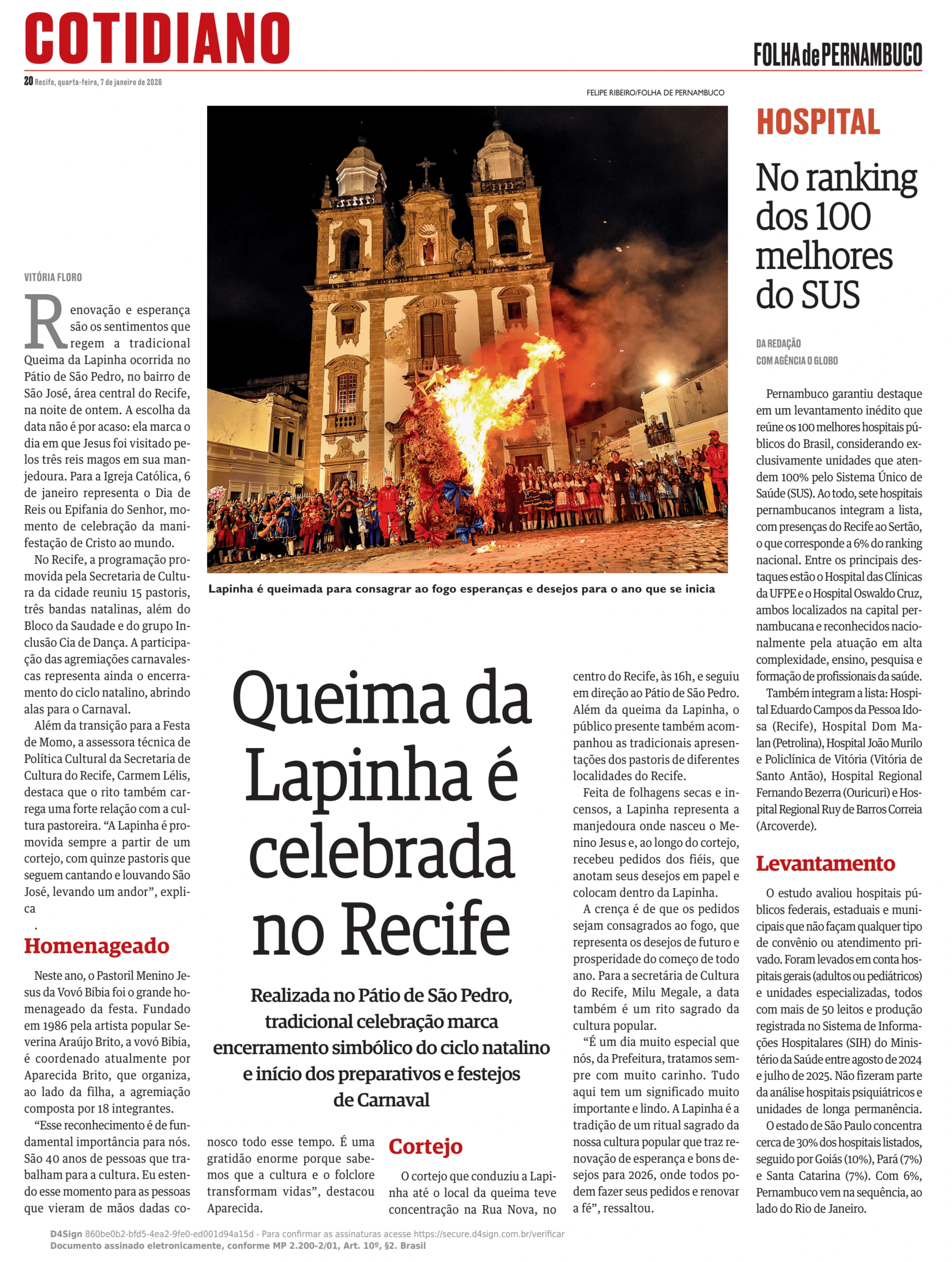 07.01.2026 - No ranking dos 100 melhores do SUS (Folha de Pernambuco)