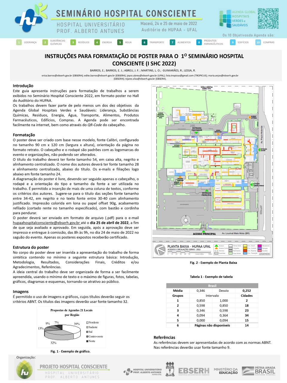 A exibição de trabalhos científicos se dará em formato de pôster e o objetivo é dar visibilidade a projetos já implementados e com resultados significativos nas áreas acima, valorizando e reconhecendo as ideias e esforços das equipes do Hospital.