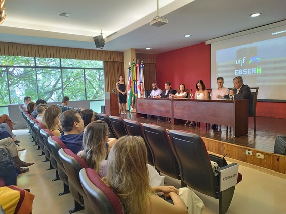 O evento contou com a presença da vice-reitora da UFJF, Girlene Alves, da pró-reitora de Pós-Graduação e Pesquisa, Mônica de Oliveira, do superintendente do HU, Dimas Araújo, do superintendente regional de Saúde, Renan de Oliveira, do gerente do Departamento de Programas e Ações de Atenção à Saúde, da Secretaria de Saúde da Prefeitura de Juiz de Fora, João Daniel Neto, representando o secretário de Saúde, Ivan Chebli, e do gerente de Ensino e Pesquisa do HU, José Otávio Corrêa.