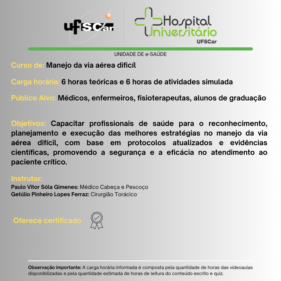 - CAPACITAÇÃO PARA TELECONSULTA HU-UFSCAR: Saiba Mais