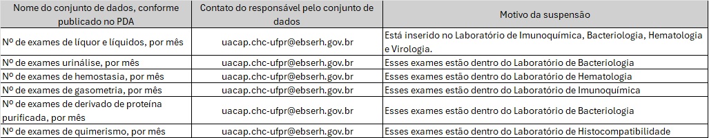 Nota explicativa que trata da suspensão das atualizações dos conjuntos de dados abaixo, conforme justificativa da área responsável.