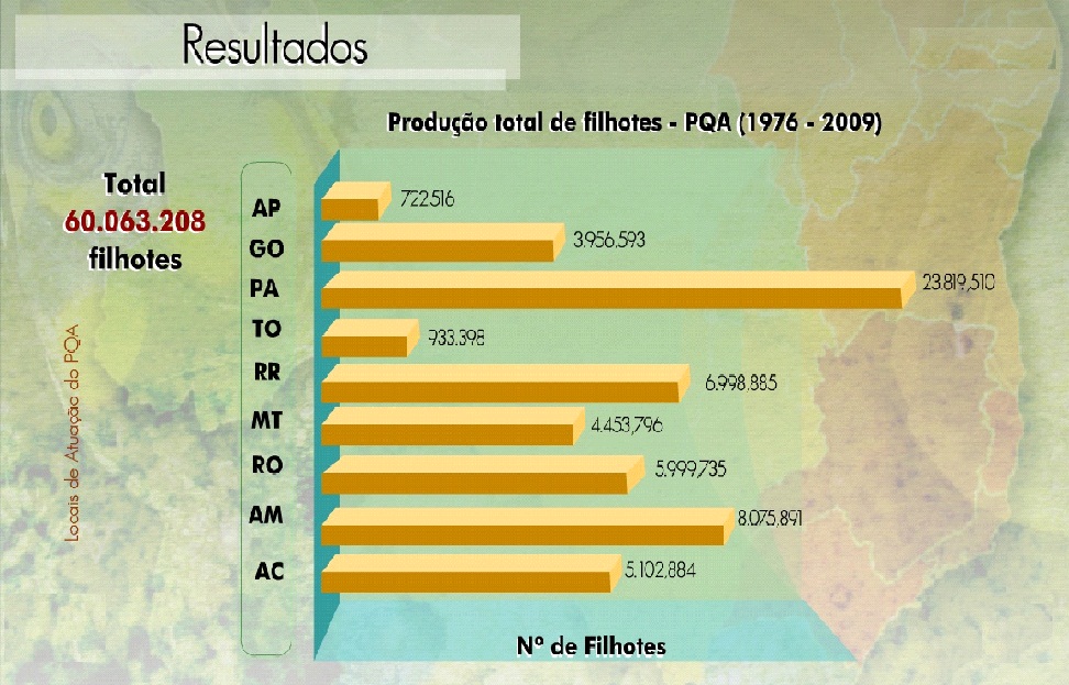 Esse passado irracional de destruição desmedida, e os cenários preocupantes quanto à possível extinção da espécie, incentivaram o governo federal a instituir no ano de 1979 o Projeto Quelônios da Amazônia (PQA). Nesse intervalo de tempo, o PQA manejou cerca de 70 milhões de filhotes de quelônios, principalmente das espécies Podocnemis expansa, Podocnemis unifilis e Podocnemis sextuberculata. Os resultados desse processo permitem que o Brasil seja reconhecido como o único país da América do Sul ainda a possuir estoques significativos de quelônios passíveis de recuperação e viáveis para programas de uso sustentável. Parte desses resultados deve ser creditada às comunidades que se associaram às iniciativas de proteção e manejo, por acreditarem na importância que esses animais representam no seu dia a dia.