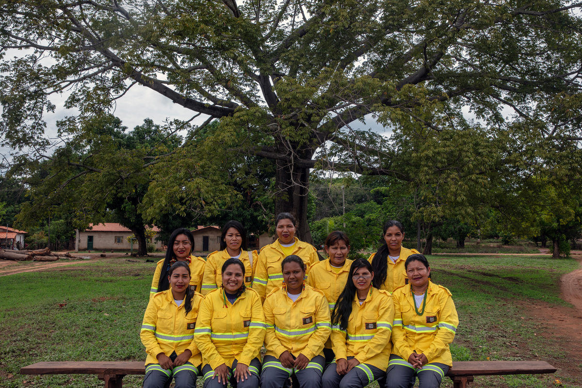 "Nós tínhamos 42 mulheres na formação da brigada voluntária. Para não deixar nenhuma de fora, nos organizamos em três frentes: a do sistema agroflorestal, da educação ambiental e do combate aos incêndios. Assim todas podem somar forças nesta luta", conta Cida Apinajé, uma das líderes da brigada voluntária Apinajé.