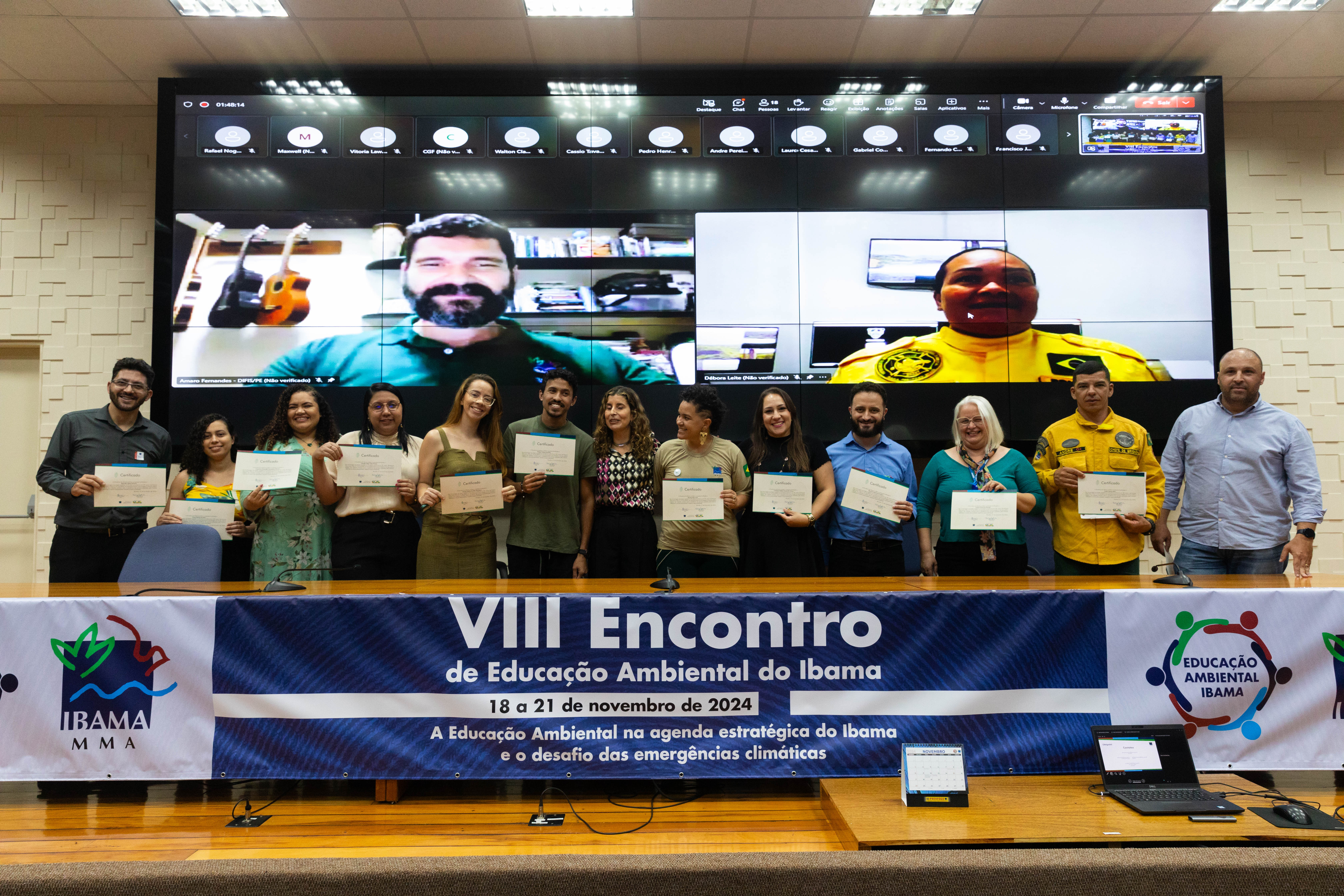 Brasília (25/11/2024) – O VIII Encontro de Educação Ambiental do Instituto Brasileiro do Meio Ambiente e dos Recursos Naturais Renováveis (Ibama) foi palco de uma homenagem especial aos servidores e colaboradores que se destacaram pelo comprometimento e pela excelência em seus serviços.