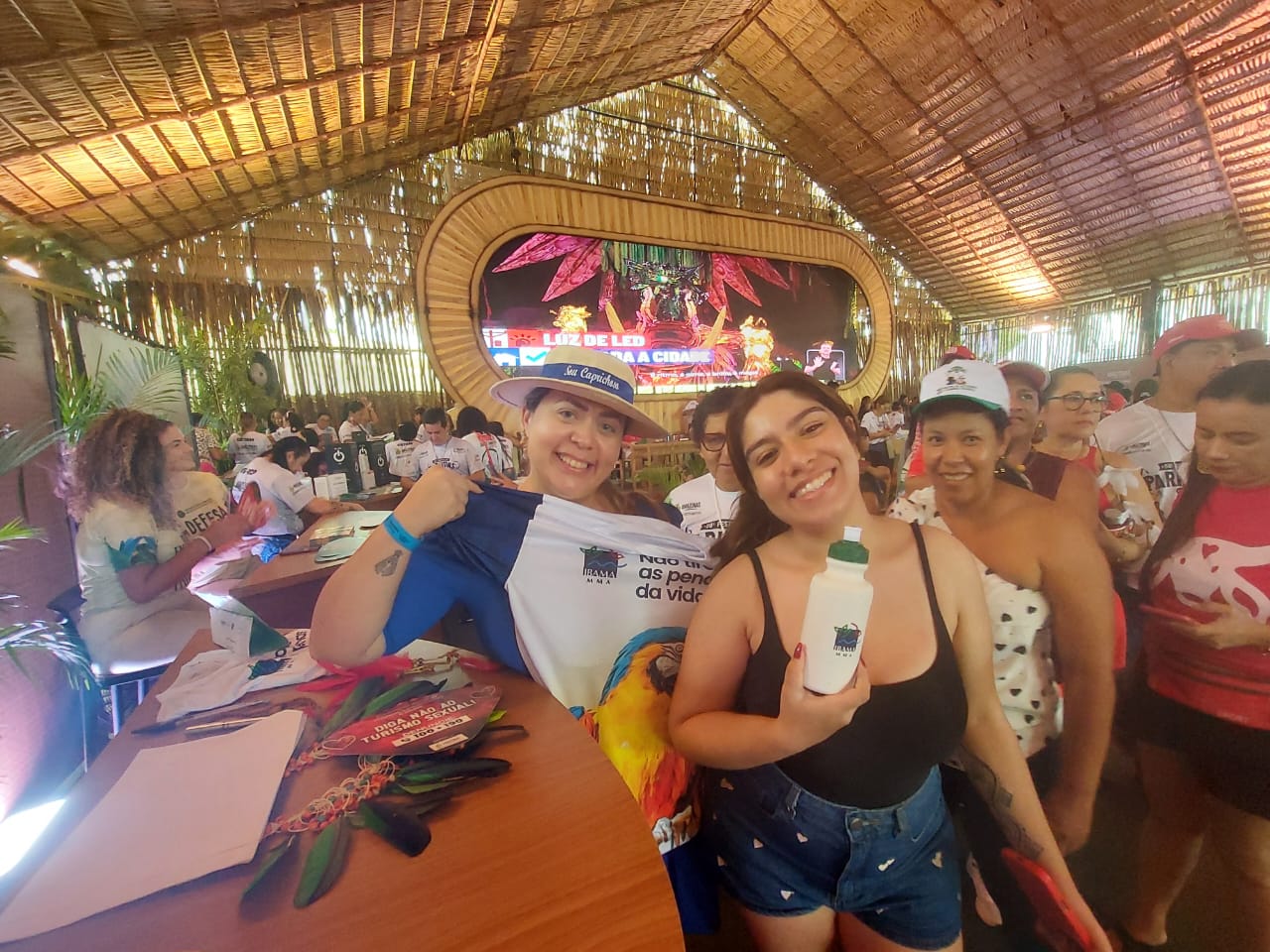 Este ano, a campanha traz uma novidade especial para o público do festival: a distribuição de camisetas nas cores das torcidas dos bois-bumbás — azul, do Caprichoso, e vermelho, do Garantido — reforçando a mensagem de que a valorização da cultura pode caminhar lado a lado com o respeito à natureza.