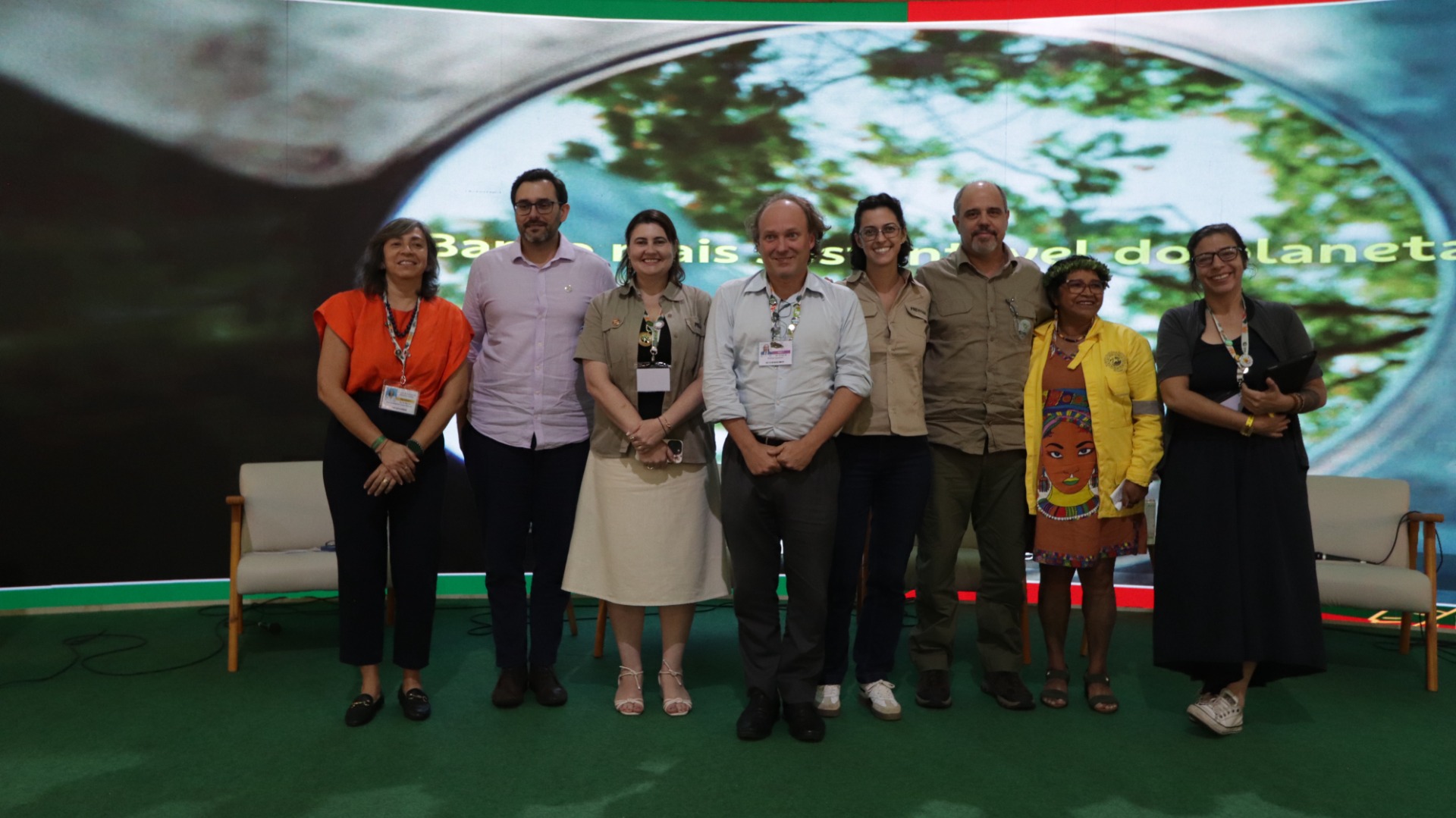 A roda de conversa adotou um formato dinâmico, orientado por perguntas. Participaram do painel o presidente do Ibama, Rodrigo Agostinho; o coordenador de proteção do ICMBio, Ricardo Brochado; a diretora de proteção territorial da Funai, Janete Carvalho; o gerente de projetos da Fundação Bunge, Leandro Morilha; e a cacica Hélia Kumaruara, liderança indígena da aldeia Muruary, trazendo diferentes perspectivas sobre a gestão do fogo em áreas protegidas e a construção coletiva de soluções para uma convivência sustentável com o fogo.
