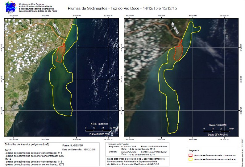 Novas imagens de satélite apontam tendência de movimentação dos rejeitos da Samarco no litoral do ES
