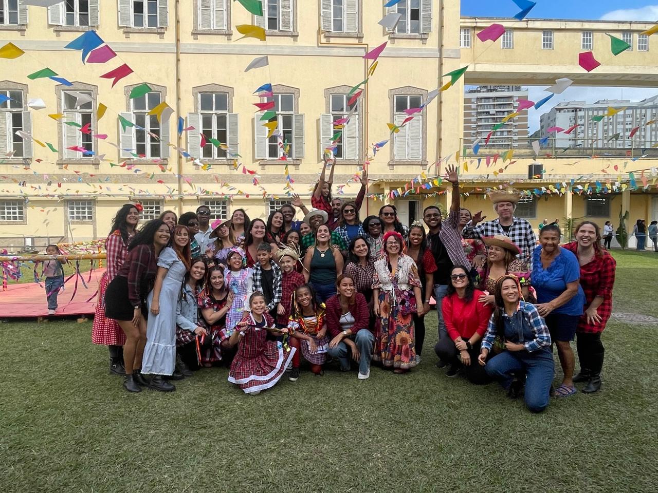 Profissionais e alunos do IBC com Conceição Evaristo, na festa julina.