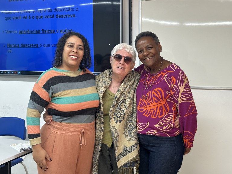 Todo esse trabalho é realizado por uma equipe formada por cinco profissionais, sob a coordenação da audiodescritora, Nadir Machado: Lindiane Nascimento, audiodescritora; Carla da Re, consultora de audiodescrição com baixa visão; Natacha Ruback e Virgínia Menezes, consultoras voluntárias cegas.