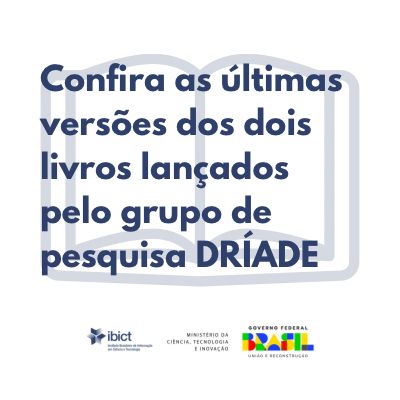 Imagem com fundo branco com a seguinte descrição: Confira as últimas versões dos dois livros lançados pelo grupo de pesquisa DRÍADE.