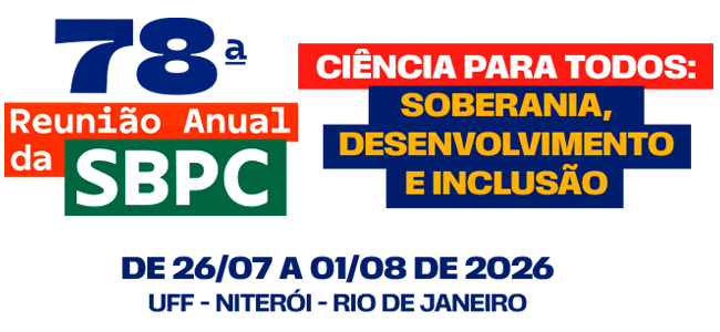 78ª Reunião Anual da SBPC - 26 de julho a 1º de agosto de 2026 📍 Niterói/RJ / Universidade Federal Fluminense – UFF (Campus Gragoatá) / R. Prof. Marcos Waldemar de Freitas Reis – São Domingos, Niterói – RJ, 24210-201