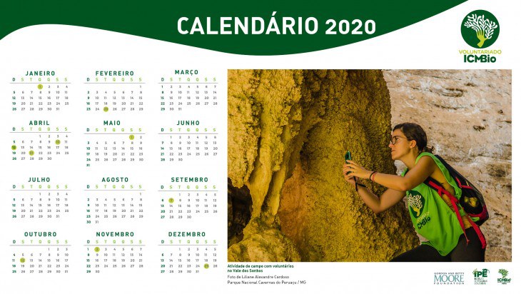 Você está aqui: Página Inicial Acesso à informação Ações e Programas Ações Socioambientais e Consolidação Territorial em UCs Programa de Voluntariado do ICMBio Calendários Calendário Voluntariado ICMBio 2020
