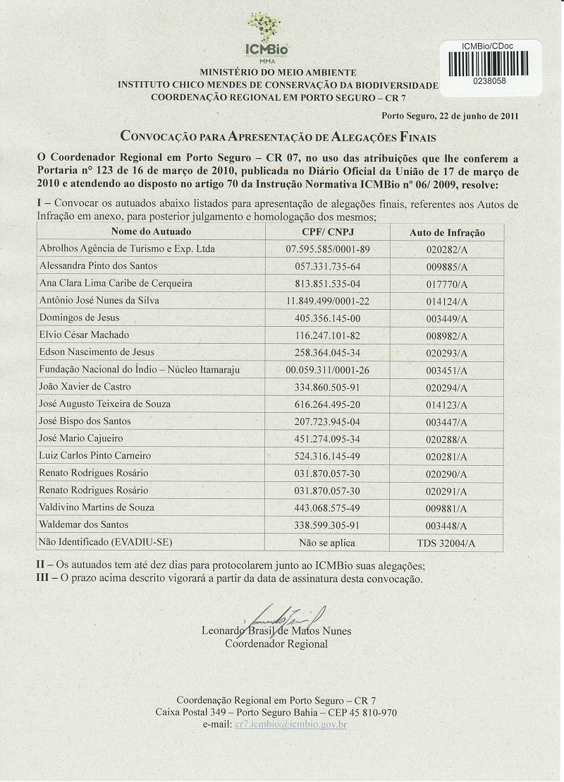 | Edital de Notificação - 01 de junho de 2010 - Convocação para apresentação de Alegações Finais |