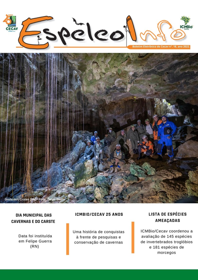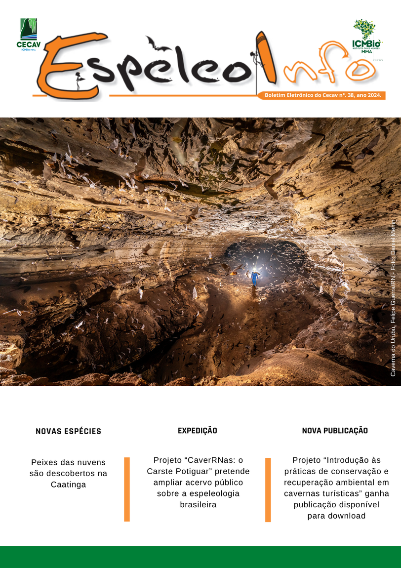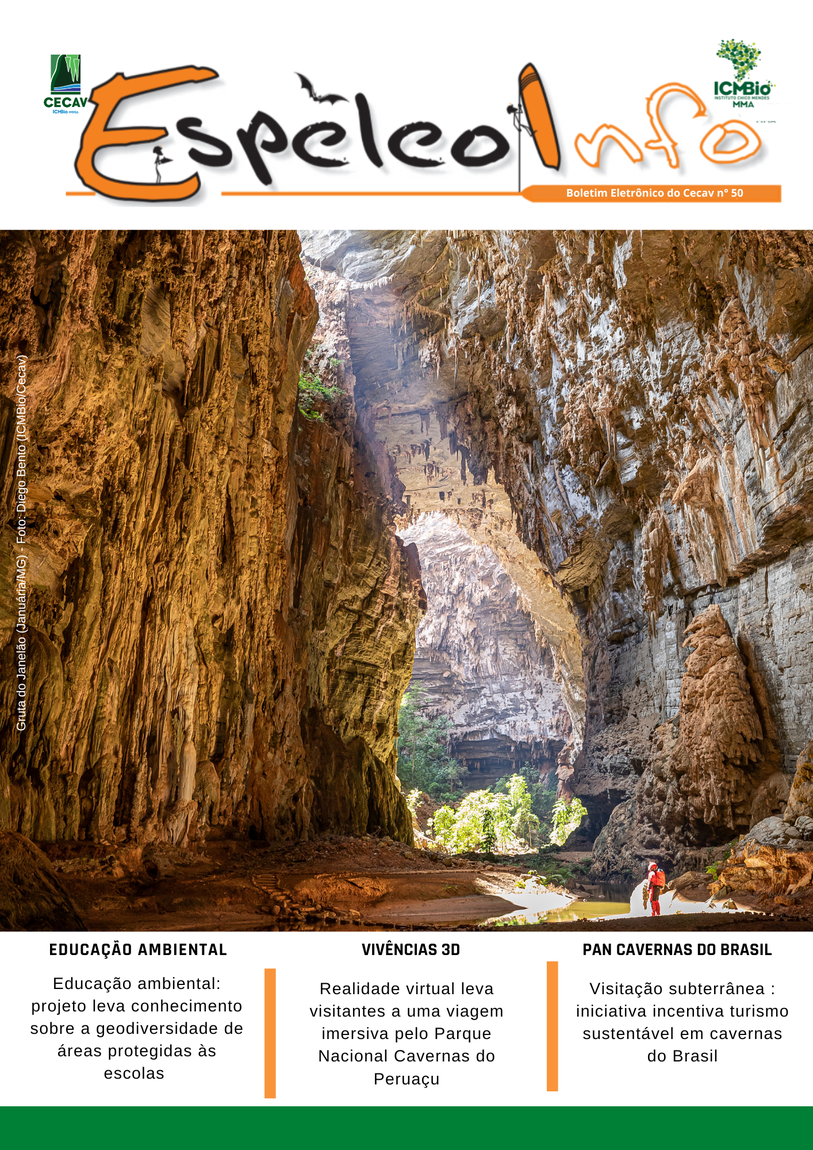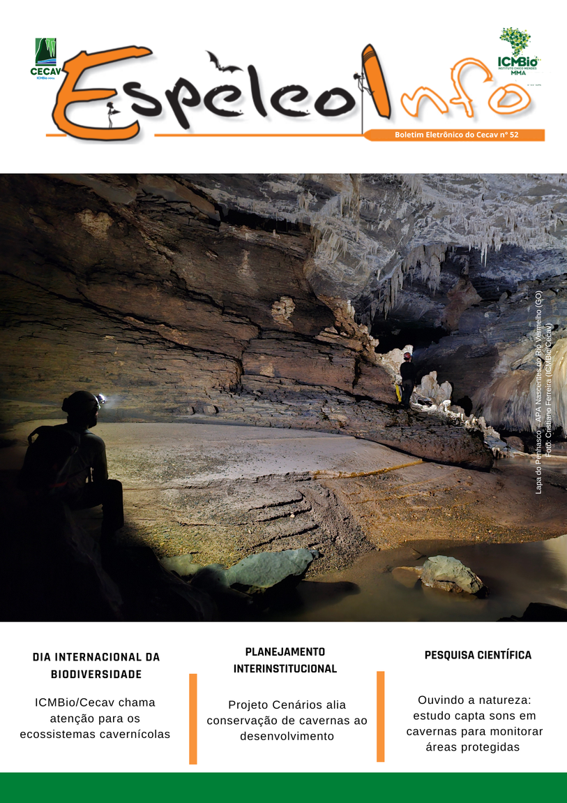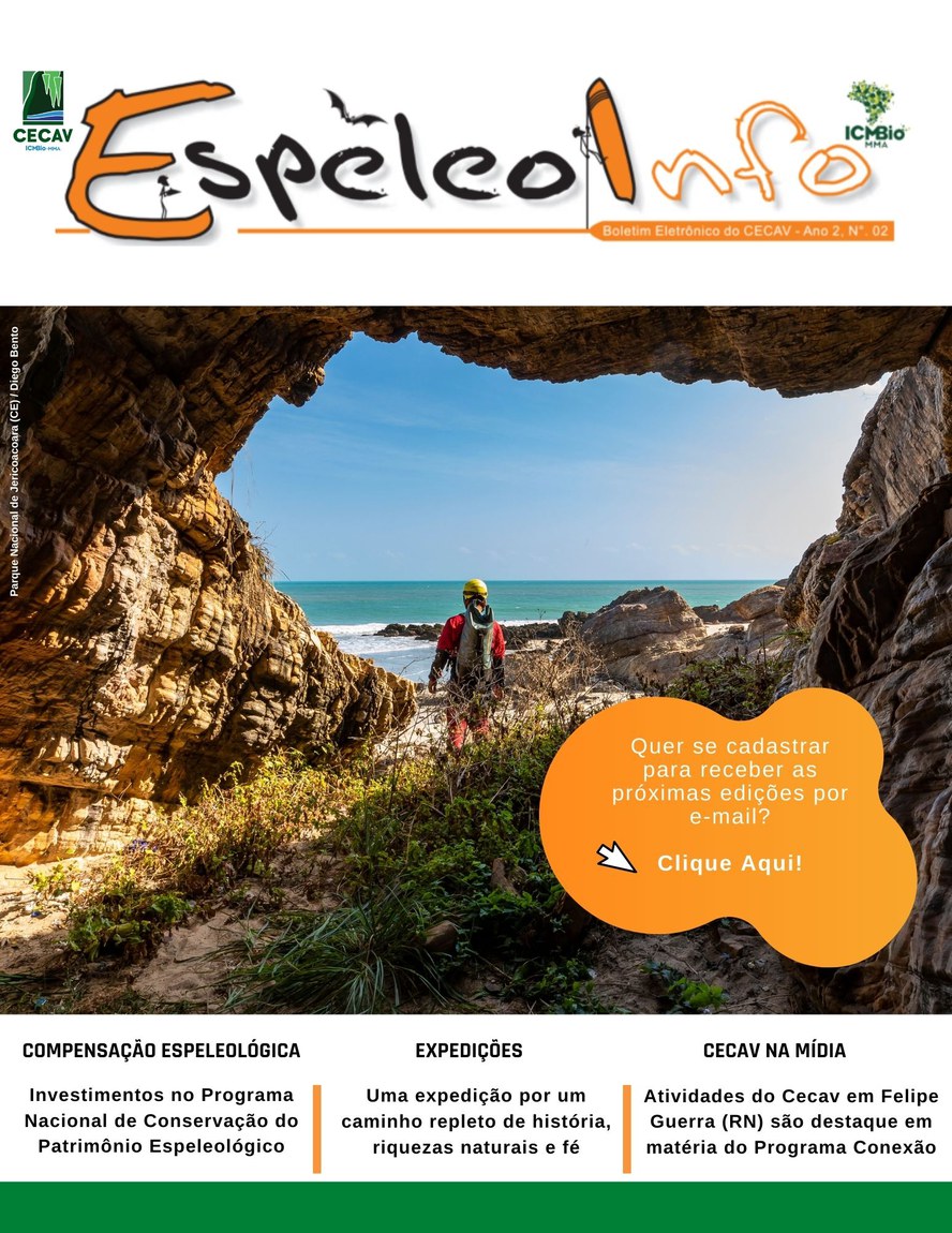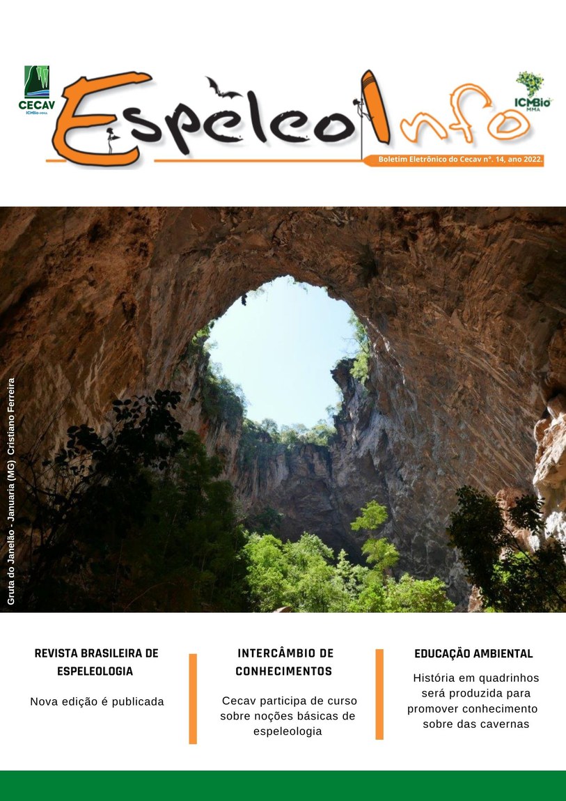 O Centro Nacional de Pesquisa e Conservação de Cavernas (Cecav/ICMBio) está relançando a EspeleoInfo, uma revista digital que tem como objetivo ampliar a divulgação e transparência das atividades do Cecav. O material é direcionado a pesquisadores, estudantes, grupos de espeleologia, espeleólogos e pessoas relacionadas à agenda de proteção e conservação de cavidades naturais subterrâneas. Nesse veículo de publicação mensal, serão divulgadas pesquisas, editais, chamadas de projetos, cursos, eventos e outras atividades relativos à missão institucional do Cecav. Os parceiros e colaboradores estão convidados a compartilhar este espaço.