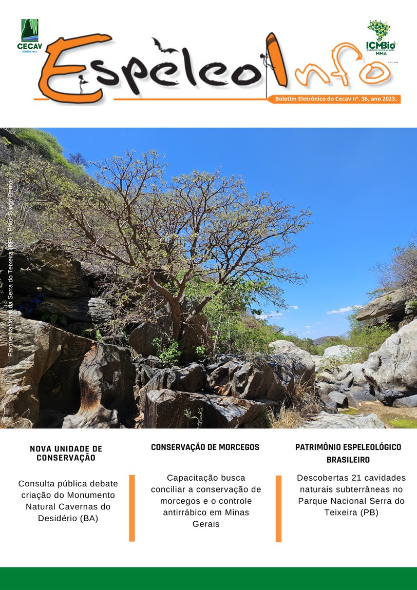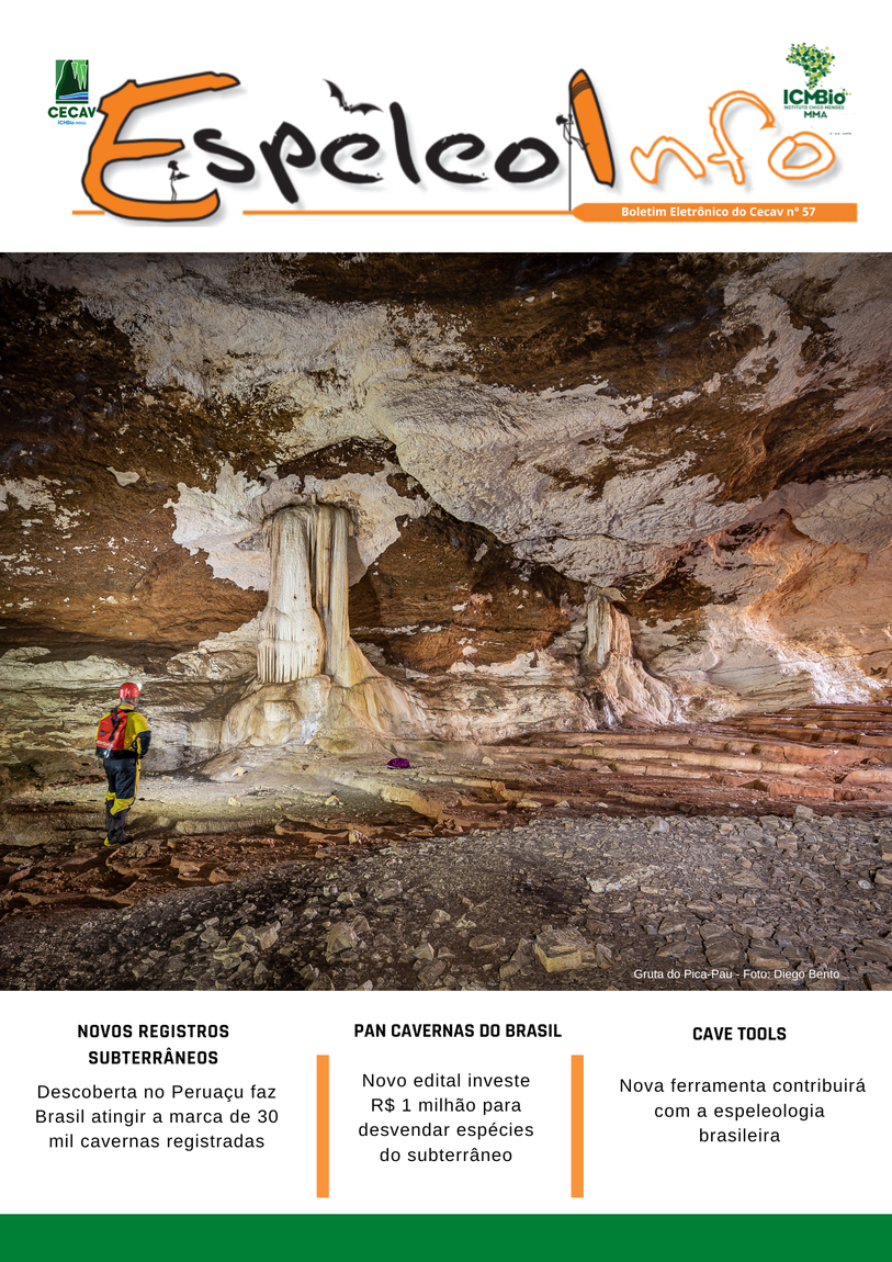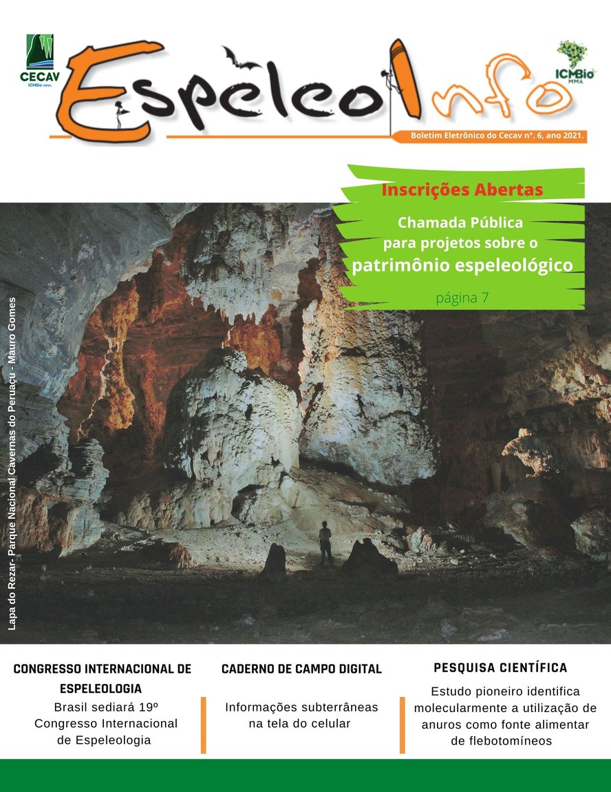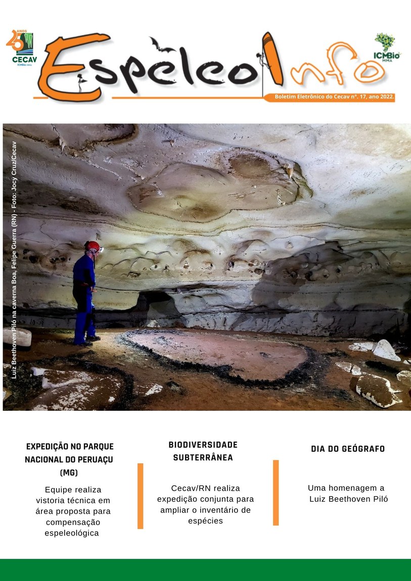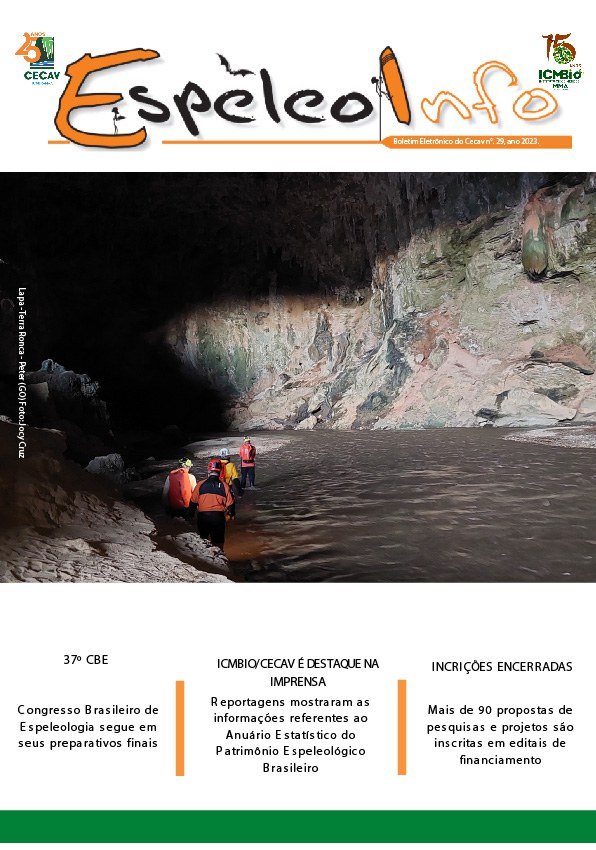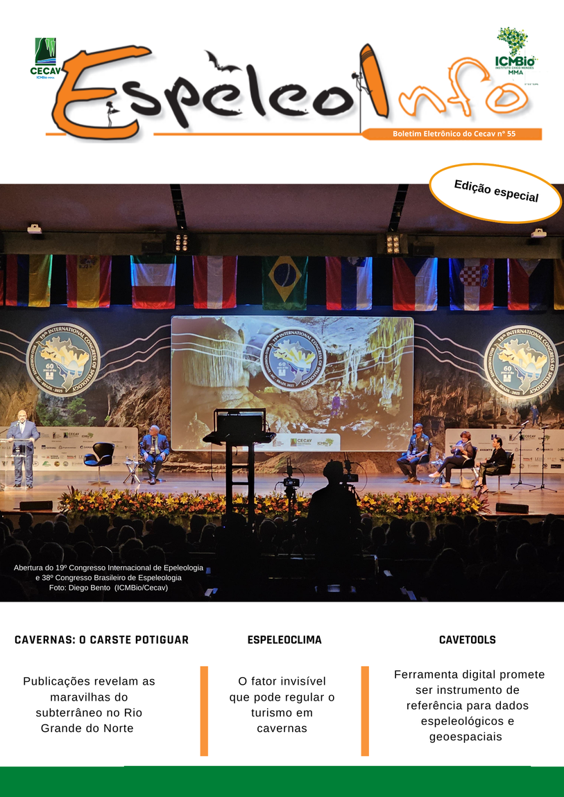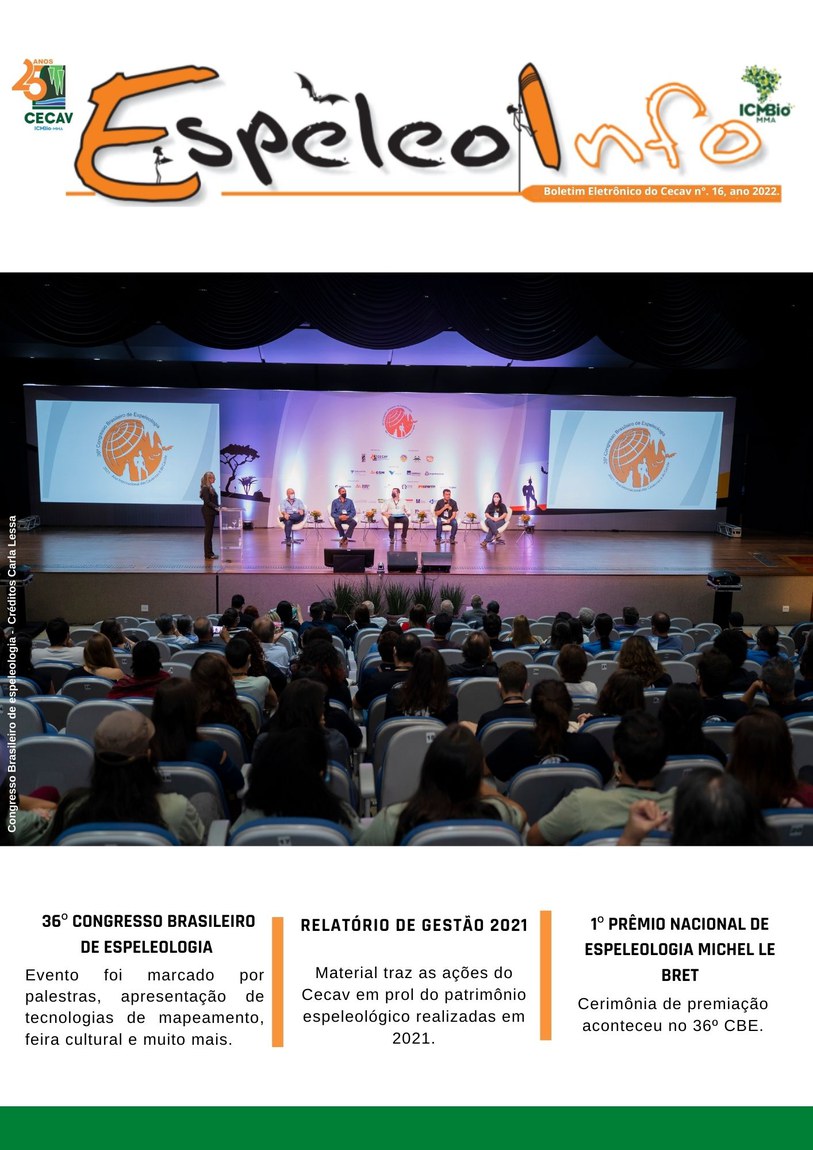 O Centro Nacional de Pesquisa e Conservação de Cavernas (Cecav/ICMBio) está relançando a EspeleoInfo, uma revista digital que tem como objetivo ampliar a divulgação e transparência das atividades do Cecav. O material é direcionado a pesquisadores, estudantes, grupos de espeleologia, espeleólogos e pessoas relacionadas à agenda de proteção e conservação de cavidades naturais subterrâneas. Nesse veículo de publicação mensal, serão divulgadas pesquisas, editais, chamadas de projetos, cursos, eventos e outras atividades relativos à missão institucional do Cecav. Os parceiros e colaboradores estão convidados a compartilhar este espaço.