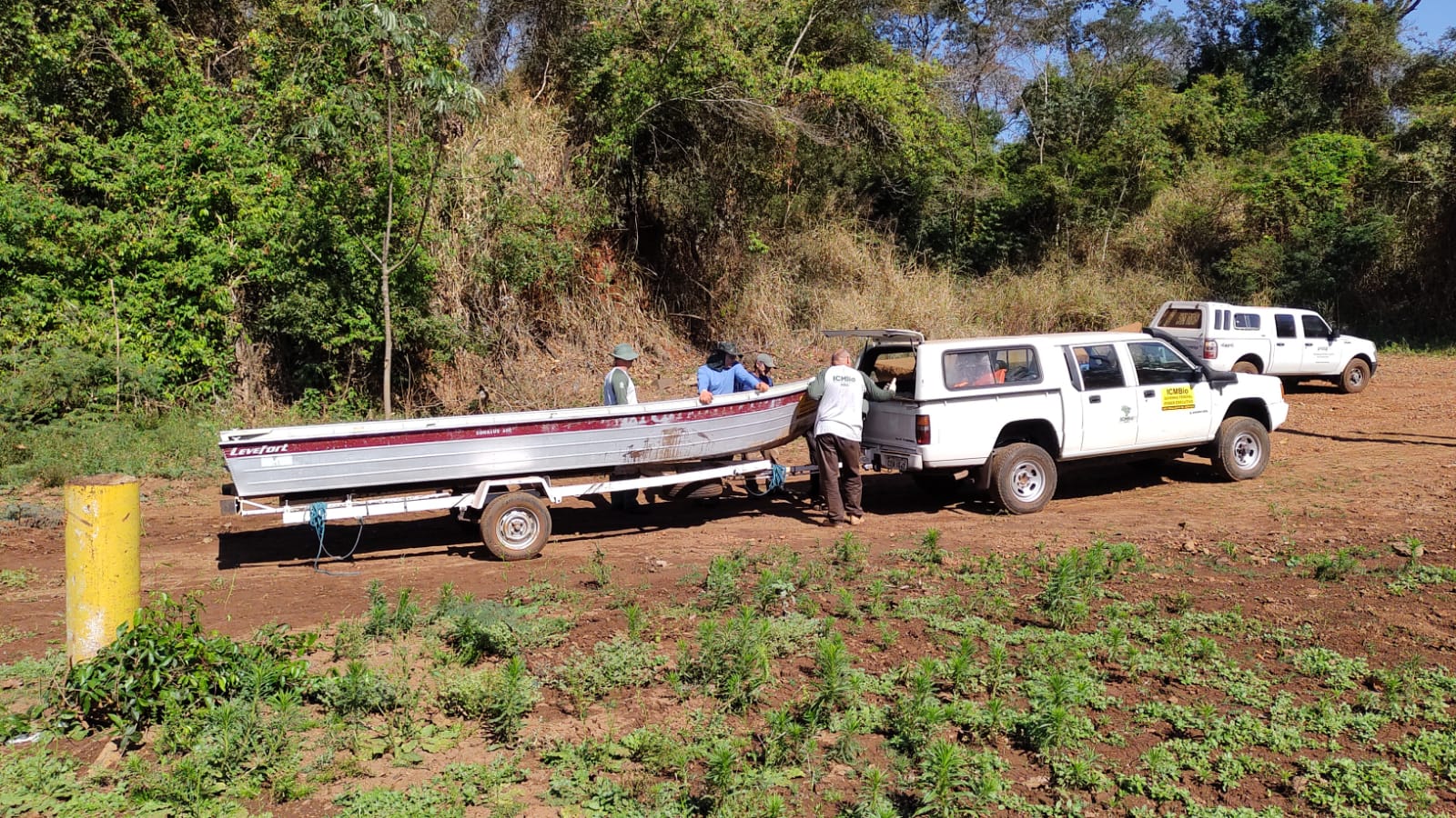 Equipe que atua na Ação 6 em deslocamento por terra.