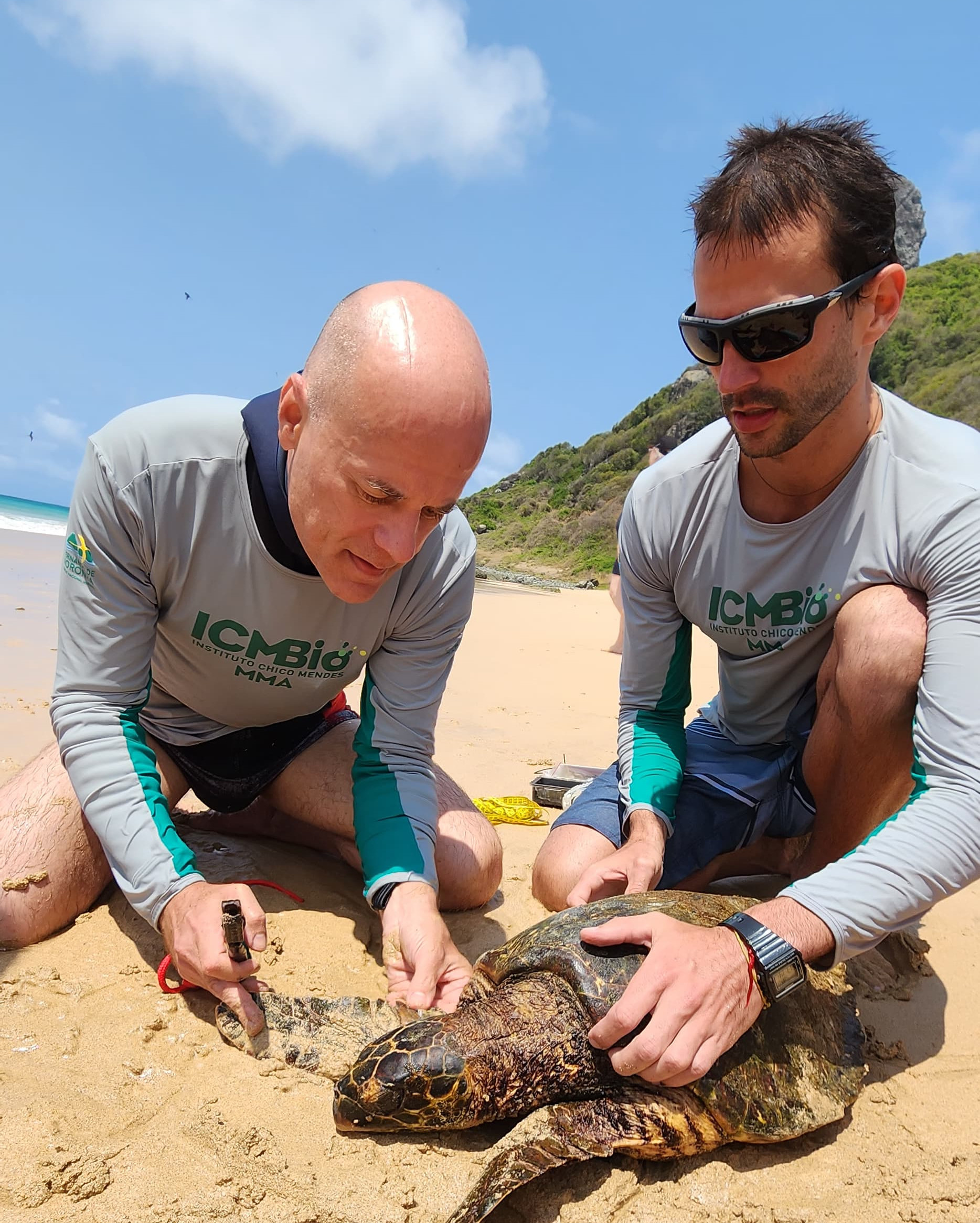 Bolsista Dênis Sana e Técnico ambietnal João Camargo em Noronha-PE.