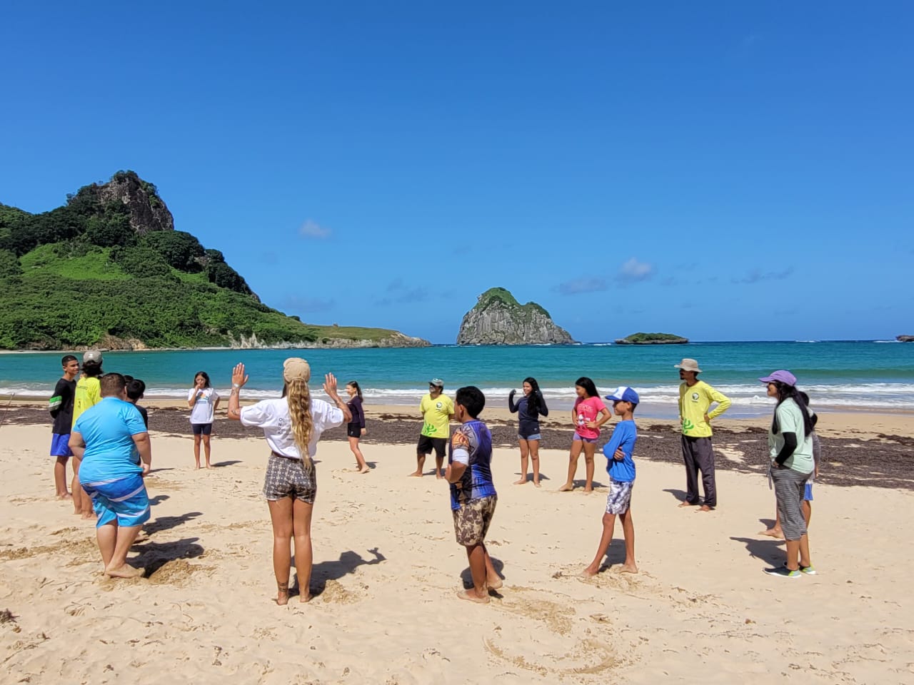 Alunos do 6º ano do ensino fundamental foram levados até a praia do Sueste, localizada dentro da área do Parque Nacional Marinho de Fernando de Noronha, onde os biólogos e voluntários do Centro TAMAR/ICMBio, realizaram atividades interativas de conscientização e conexão com a natureza.