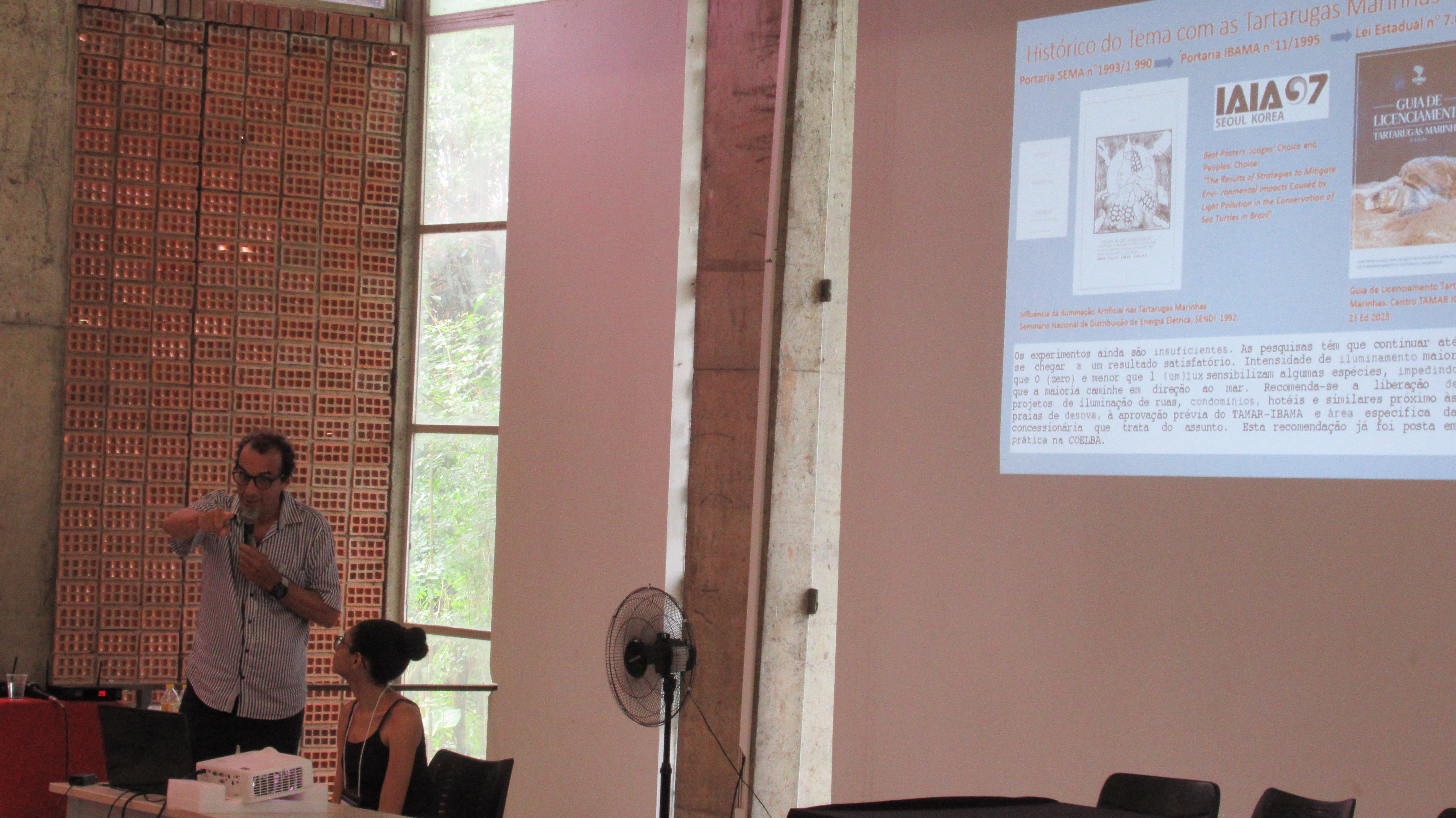 Na abertura o presidente do Conselho de Arquitetura e Urbanismo da Bahia-CAU, Thiago Brasileiro, convidou os mais de 90 participantes a repensar a iluminação urbana das cidades litorâneas à luz dessa relação natureza-homem-arquitetura. O Coordenador do Centro TAMAR/ICMBio Joca Thomé destacou a importância de um momento como este em que “União, Estado (BA) e Municípios juntos podem somar esforços com a academia e sociedade organizada, e discutir as melhores alternativas para desenvolver, respeitando a geobiodiversidade”.O primeiro dia foi marcado por palestras esclarecedoras sobre a problemática da iluminação excessiva de cidades, orlas e praias, e suas consequências não apenas para a vida marinha, mas também para a saúde humana.