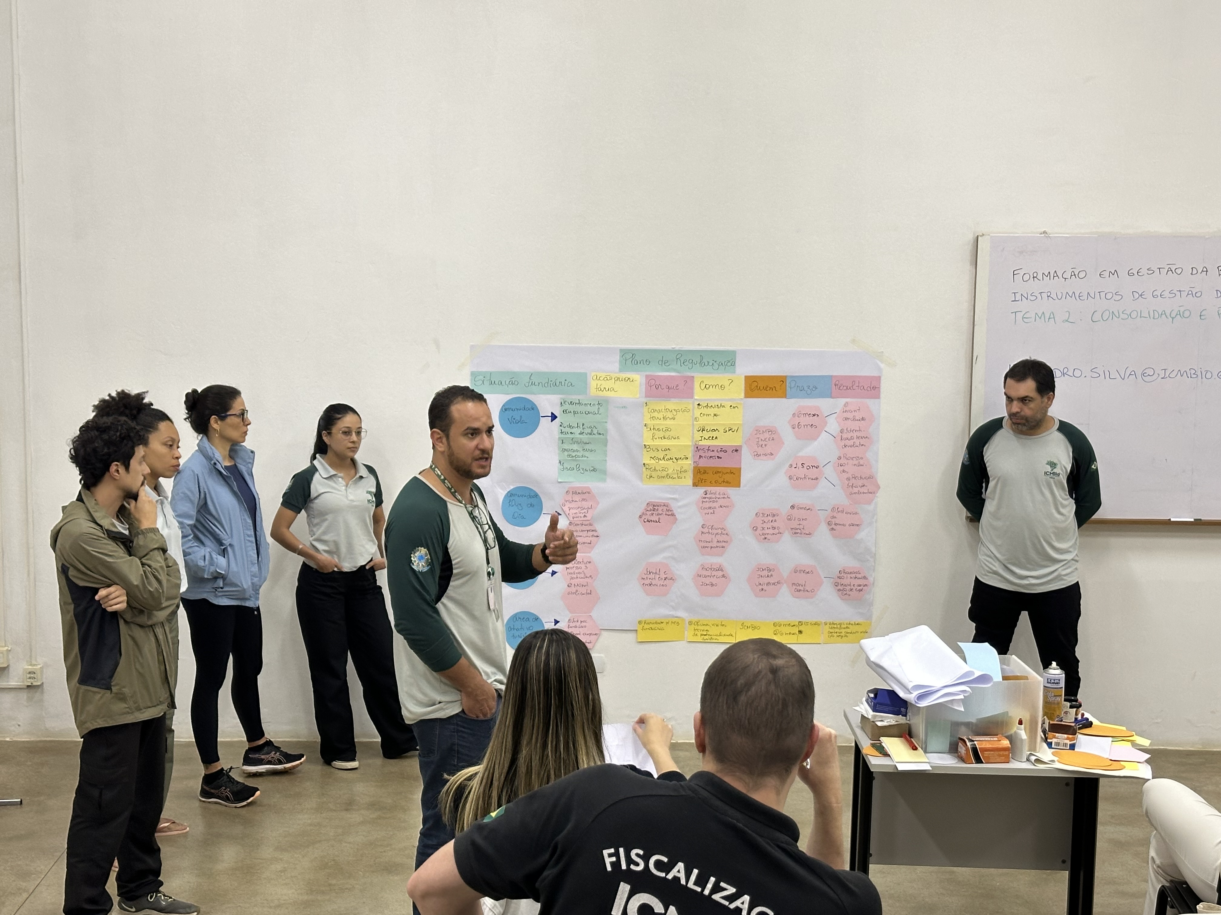 Esta etapa presencial foi dividida em dois módulos principais: "O gestor do território na Amazônia" e "Atos Administrativos". Antes dessa fase, os participantes passaram por uma etapa inicial no formato de Educação a Distância (EaD). Considerando as diferentes formações e experiências profissionais dos novos servidores, é fundamental um processo formativo que os capacite em temas específicos da área ambiental e, especialmente, sobre a realidade da Amazônia. O objetivo é desenvolver habilidades essenciais para o trabalho no Instituto Chico Mendes, como a proteção e gestão de conselhos, o manejo e o monitoramento da biodiversidade.