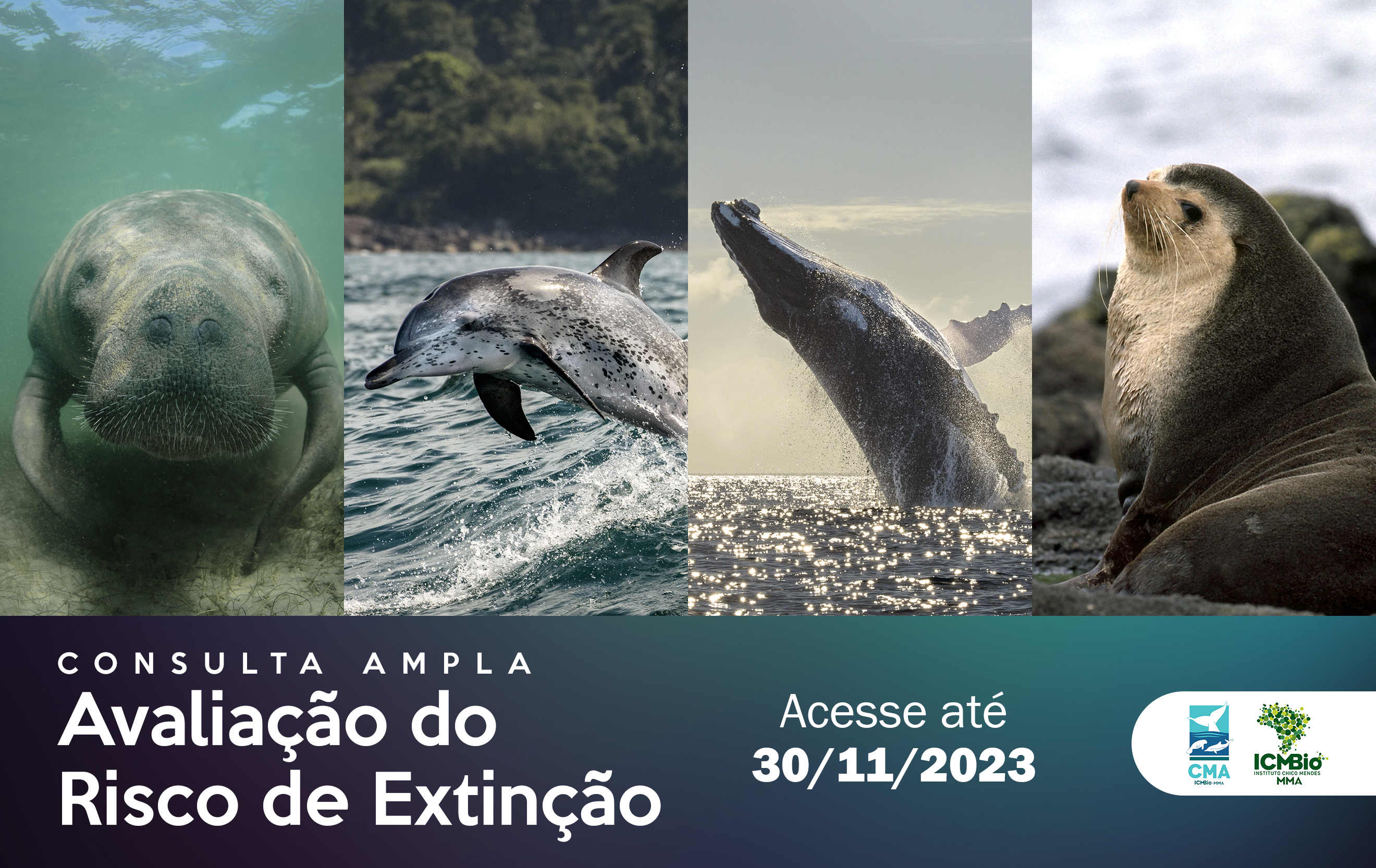 Está aberta a consulta ampla para avaliação do estado de conservação de 24 espécies de mamíferos aquáticos, com prazo para envio de contribuições até o dia 31 de dezembro de 2023. A consulta é aberta ao público e é promovida pelo Centro Nacional de Pesquisa e Conservação de Mamíferos Aquáticos (CMA), vinculado ao ICMBio. As contribuições servirão como base para a fase inicial do processo de avaliação do estado das espécies. Nesta etapa, a sociedade brasileira pode se envolver no processo e fornecer observações e informações sobre os táxons e seus habitats. Para acessar as fichas de preenchimento de informações das espécies é necessário entrar no módulo de consulta do Sistema de Avaliação do Estado de Conservação da Biodiversidade (SALVE). Para enviar as contribuições, é necessário realizar um cadastro no site pelo link aqui.