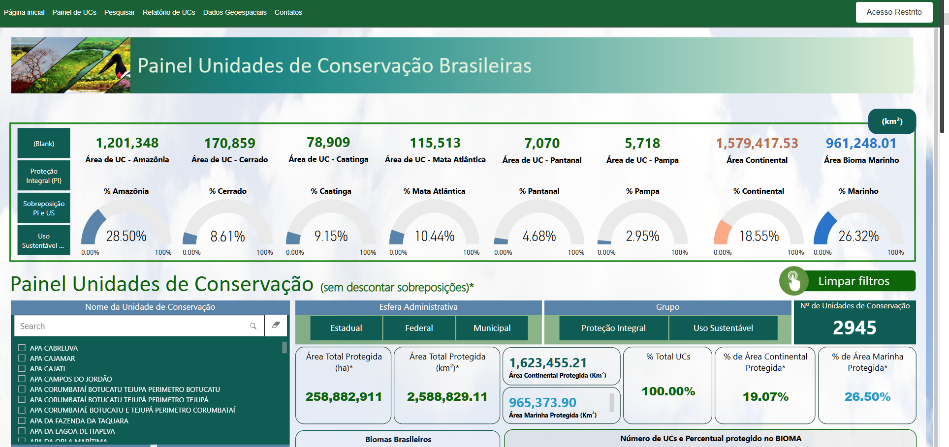 Acesse o Painel de Unidades de Conservação Brasileiras.