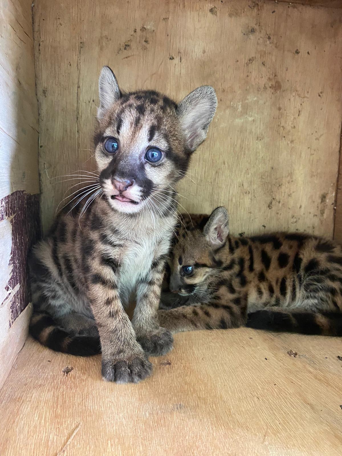 Dois filhotes de onça-parda resgatados pelo Instituto Chico Mendes são transportados pela Azul Linhas Aéreas de Itaituba até Belém do Pará
