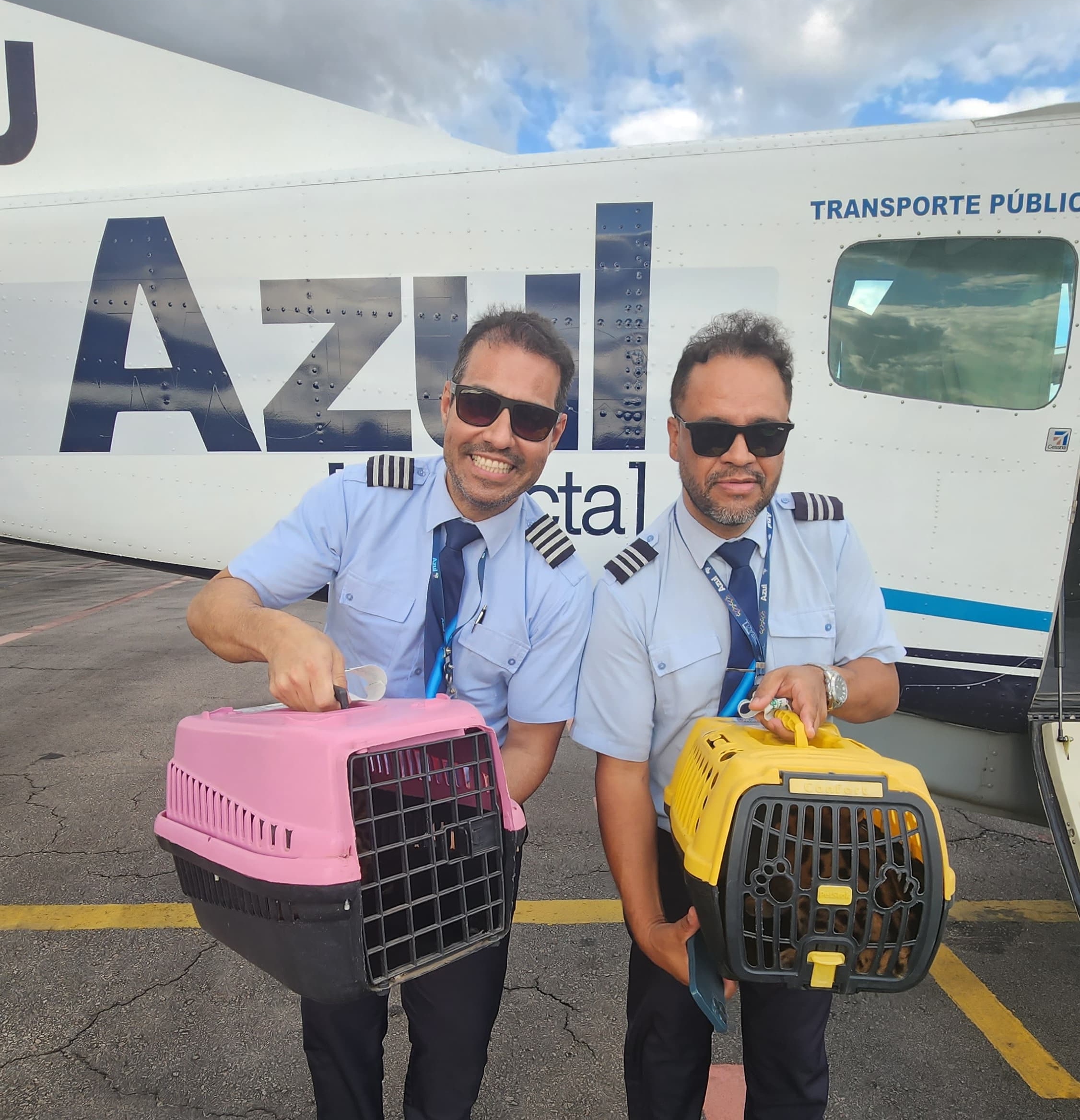 O voo das onças aconteceu no dia 4 de julho, em uma aeronave Cessna Grand Caravan, da Azul Conecta, que levou a analista ambiental do Instituto Chico Mendes Greice Quele de Oliveira e a veterinária Leana Moraes. Leana trabalha na clínica veterinária Toca DiPets em Itaituba, que deu total apoio nos cuidados especiais com os felinos.