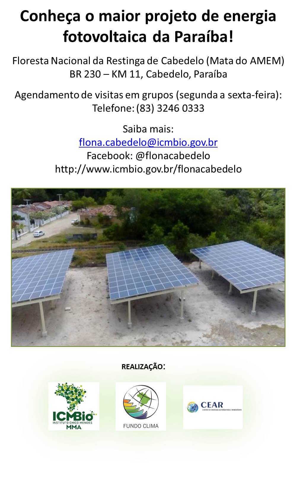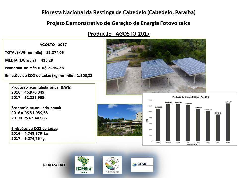 Não é de hoje que os servidores da Floresta Nacional da Restinga de Cabedelo adotam inovações tecnológicas na gestão da unidade. Desde agosto do ano passado, eles utilizam energia solar oriunda de um sistema fotovoltaico instalado na própria Flona. Nesse mês de agosto a produção passou de 12.800 kWh/mês.