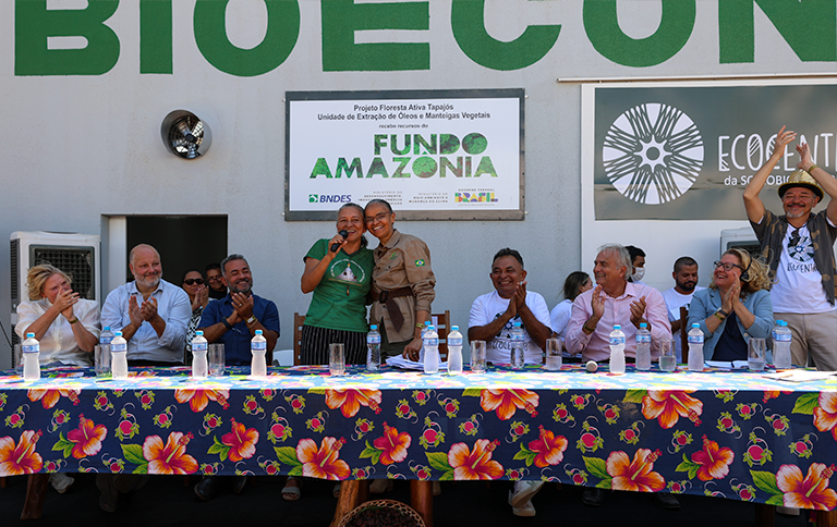 Após a inauguração da sede da GR e da sede do Serviço Florestal, a comitiva das duas ministras se juntou à comitiva da ministra de Desenvolvimento Internacional da Noruega, Anne Beathe Tvinnereim, para inaugurar o Ecocentro de Sociobioeconomia de Santarém. Financiado pelo Fundo Amazônia, o Ecocentro será usado por produtores e empreendedores locais para facilitar a comercialização de produtos agroextrativistas de base comunitária do oeste do Pará.