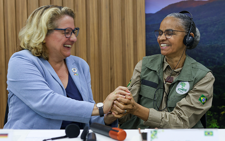Na sexta-feira (19/7) a ministra do Meio Ambiente e Mudança do Clima, Marina Silva, com a ministra da Cooperação Econômica e do Desenvolvimento da Alemanha, Svenja Schulze, inauguraram a sede da Gerência Regional do Norte do Instituto Chico Mendes, localizado na orla de Santarém/PA. O prédio fica ao lado da sede da unidade regional do Serviço Florestal, que também foi inaugurado na ocasião. No evento também foi assinado um acordo de cooperação entre o Instituto Chico Mendes e a GIZ (leia mais aqui).